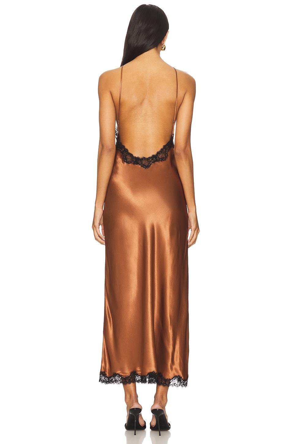 Self: 100% viscoseLace: 100% polyamide. Dry clean. Unlined. Pull-on styling with adjustable shoulder straps. Satin fabric with subtly flounced hem and contrast lace trim. Made in China. Revolve Style No. RIXR-WD48. Manufacturer Style No. 010.05265.325.06287.