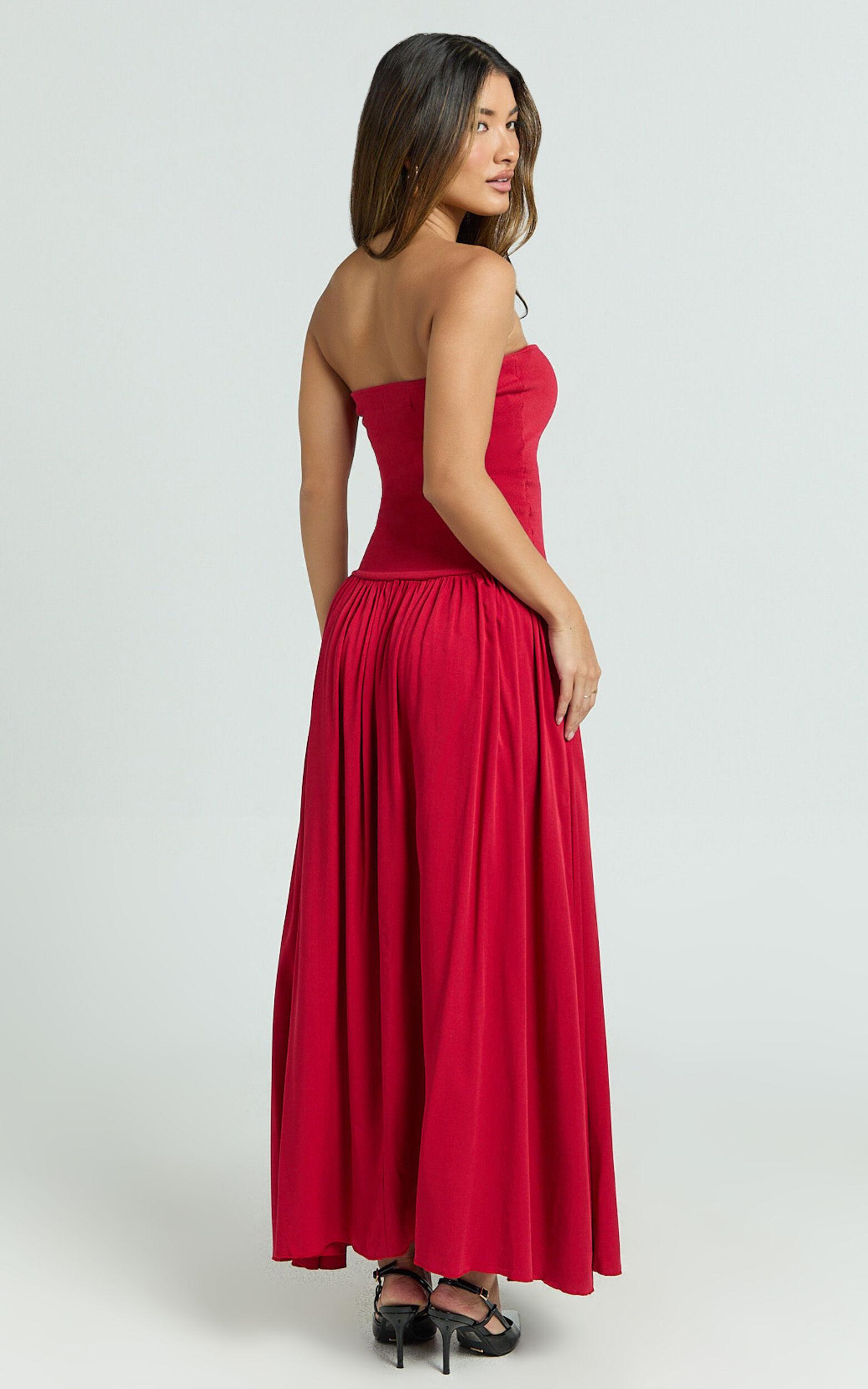 Discover the perfect look in our Harlee Maxi Dress, the ultimate fit & flare moment your wardrobe needs. This strapless, drop waist stunner is designed to hug your curves with a sculpted knit jersey bodice before flowing out into a full, gathered skirt—so you’re serving maximum drama with zero effort. Crafted in soft, breathable rayon, the Harlee Dress is perfect for everything from casual brunches to special occasions.Product Details:Pull on styleFit & flareStrapless necklineJersey fabricMaxi lengthRayon materialCasual wearSize and FitSize S / 8 length: 125cm / 49.21inStudio model is wearing size XS / 6 AU / 2 US / 6 UK / 34 EUStudio model's height is 170cm / 5'7''Material and CareContrast Fabric: 100% Polyester Main Fabric: 100% RayonHigh Stretch