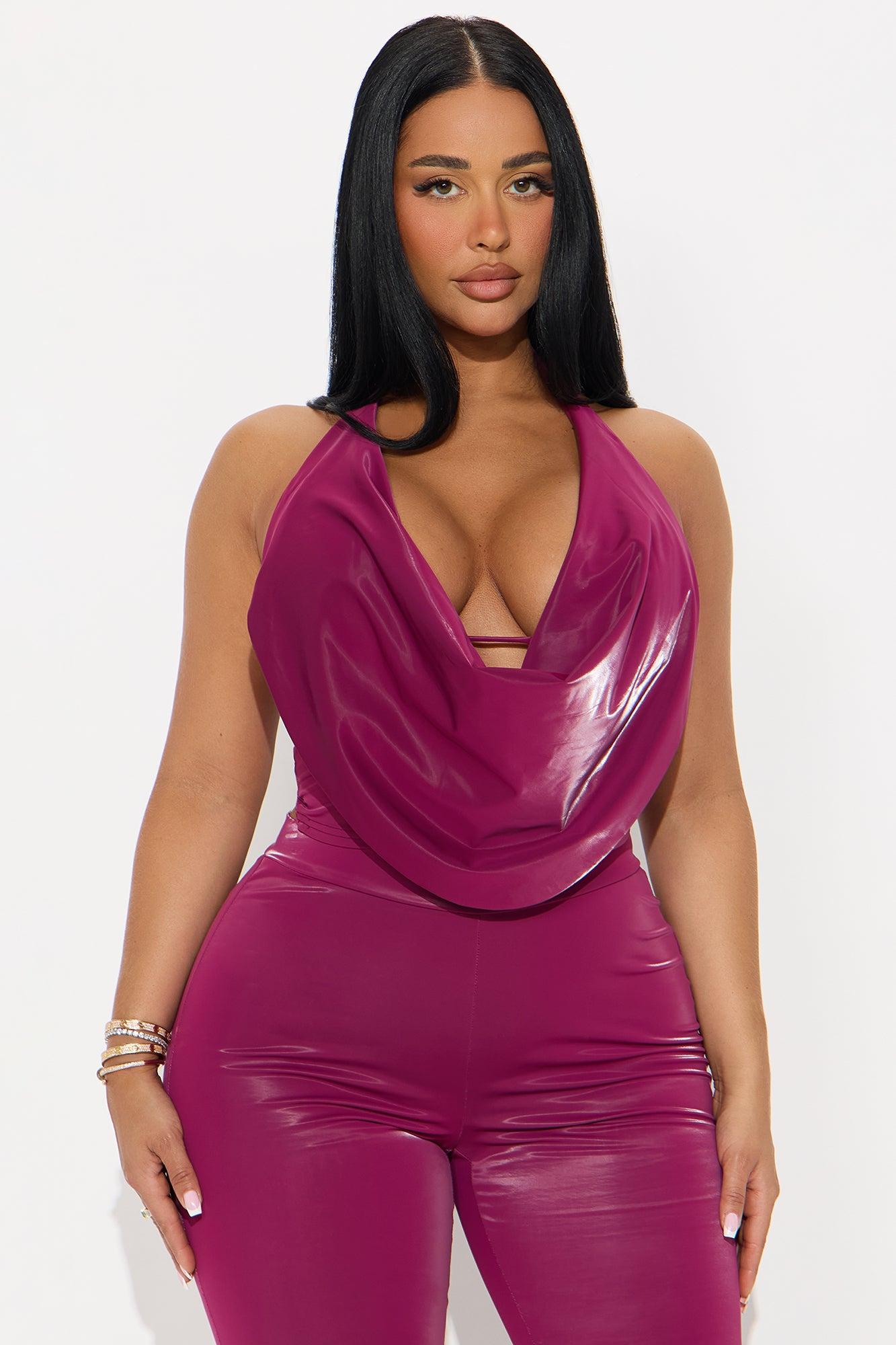 Harley Coated Faux Leather Halter Capri Set - Wine Female