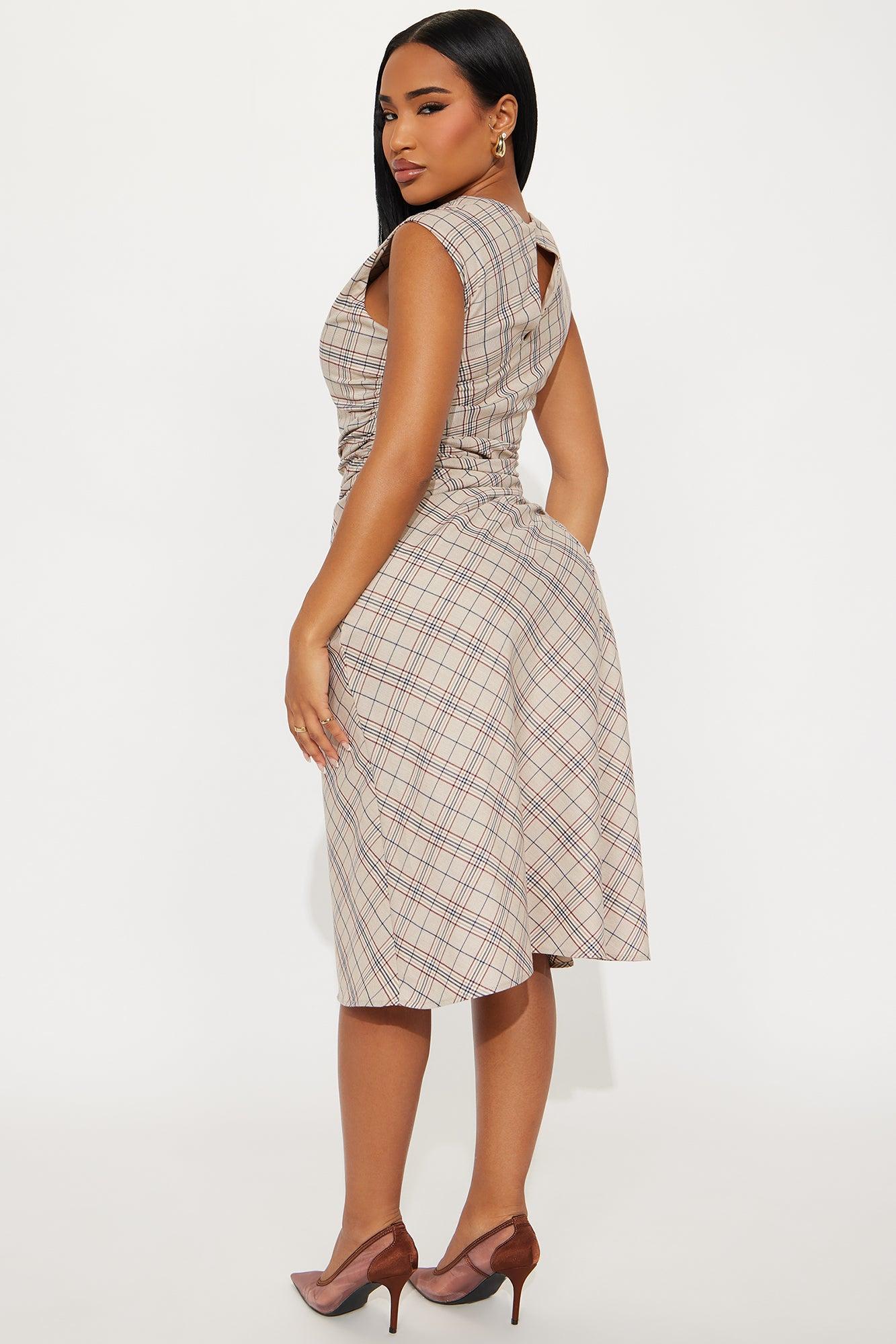 Harley Ruched Plaid Midi Dress - Taupe/combo Female