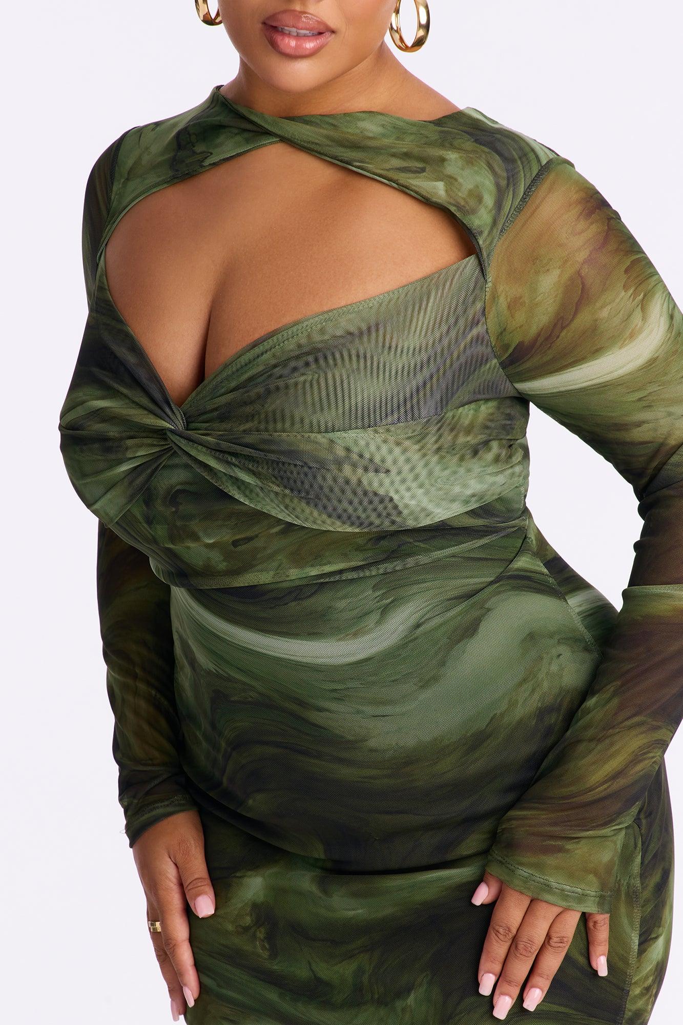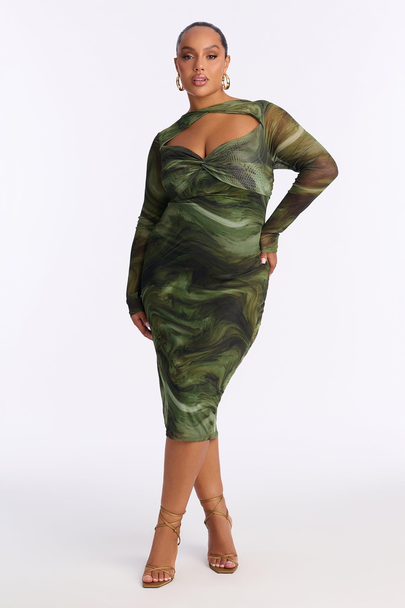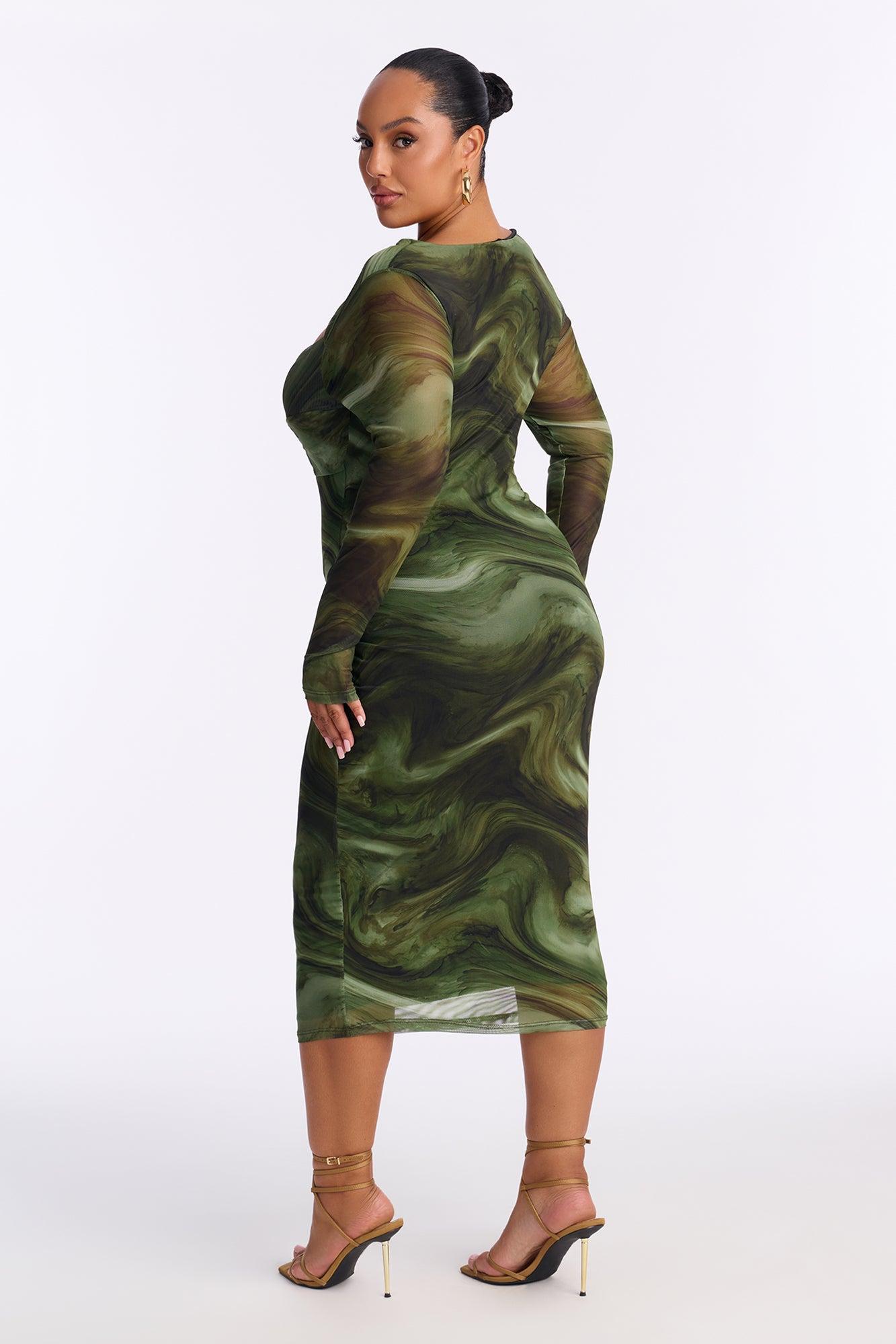 Harlow Long Sleeve Mesh Midi Dress - Olive Female