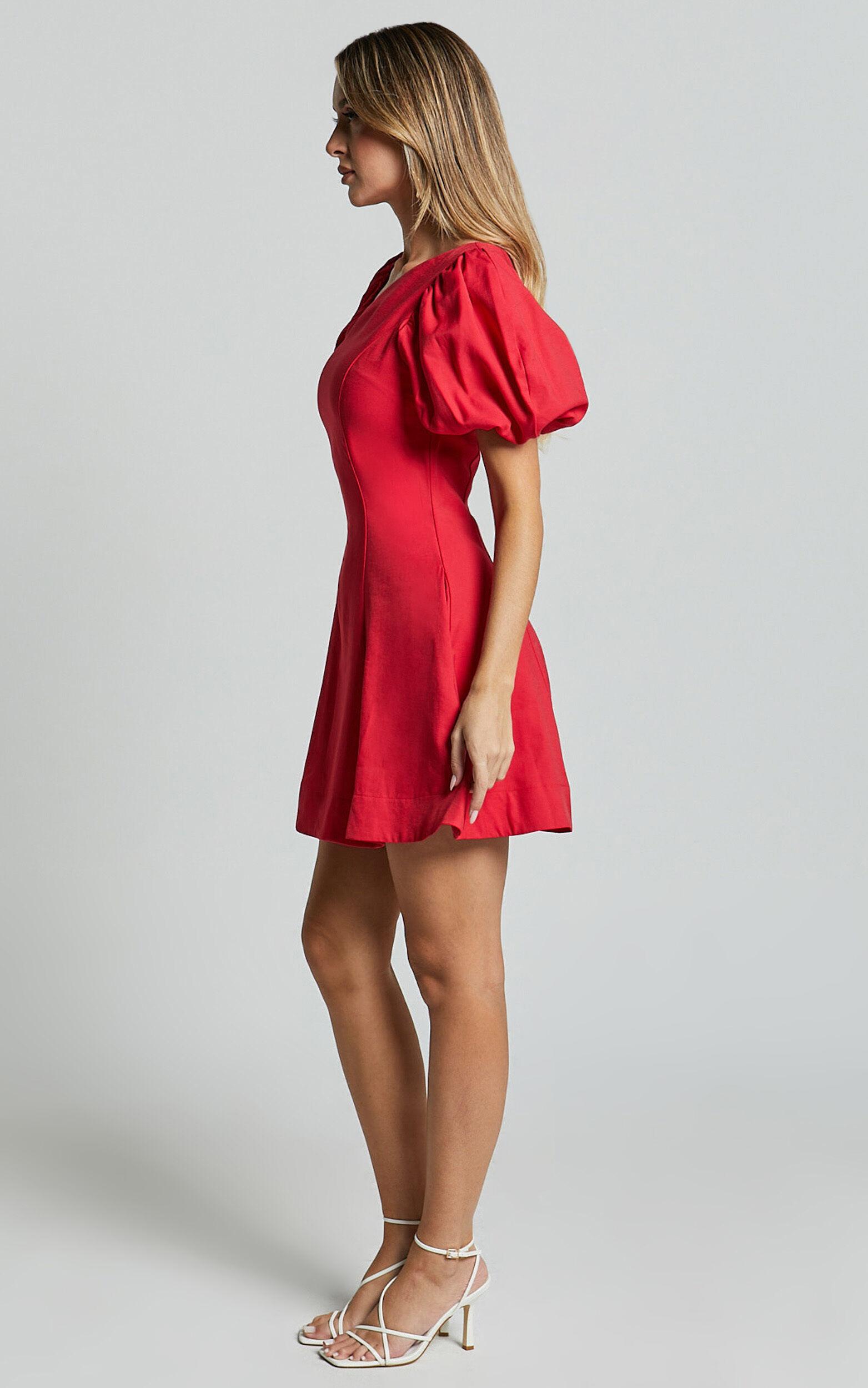 Get ready to turn heads in the Harlow Mini Dress! This stunning red dress is perfect for any occasion, whether it's a party day or a special night out. The asymmetrical puff sleeve adds a trendy touch to this classic fit and flare style, while the mid weight woven rayon fabric gives it just the right amount of structure. With its flattering mini length and short sleeves, this dress will make you feel confident and empowered wherever you go. So go ahead, step out in style with the Harlow Mini Dress - because every girl deserves to look fabulous!Product Details:Zips detailsInner liningFit & flare dressMid weight wovenAsymmetrical necklineParty day readyMini lengthShort sleeveRayon materialSize and FitSize S / 8 length: 82cm / 32.28inMaterial and CareMain Fabric: 70% Rayon, 30% Polyester Lining: 96% Polyester, 4% SpandexNo Stretch