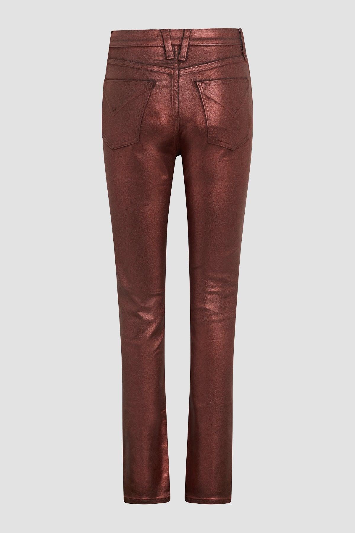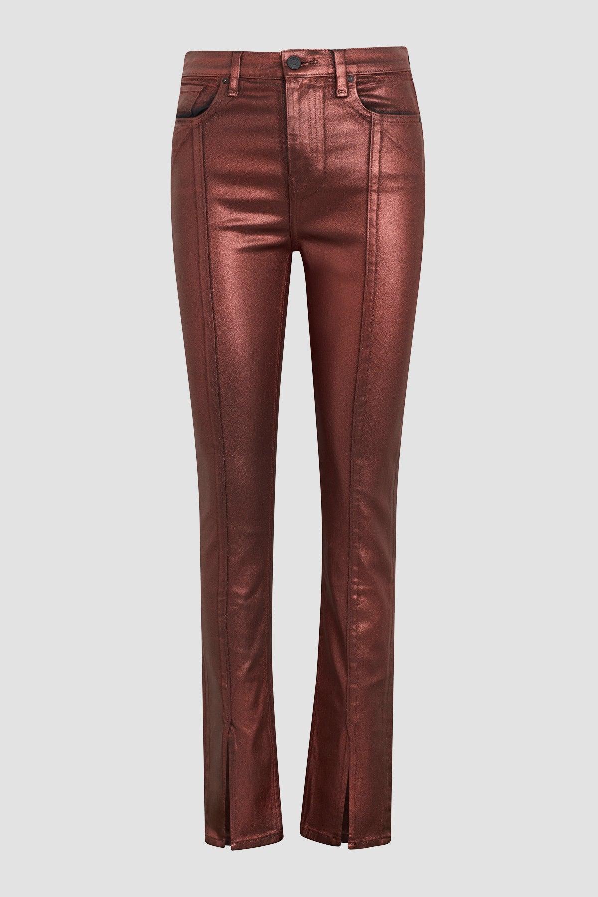 Description Our Harlow Ultra High-Rise Cigarette Jean in Cinnamon Glitter is cut with a slim, cropped silhouette with a shimmery flare and front slit hem. Product Details Front Rise: 12.25", Leg Opening: 14.5", Inseam: 31"Model Height 5'9"Model wearing size 25Measurements based on size 27 Fit & Care Content: 59% Cotton, 33% Modal, 6% Polyester, 2% ElastaneMachine wash cold with like colorsDo not bleachTumble dry low or hang to dry