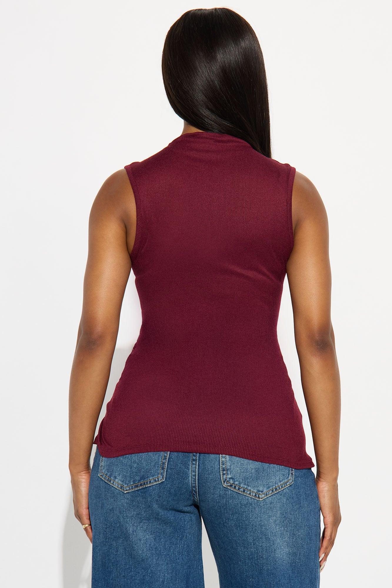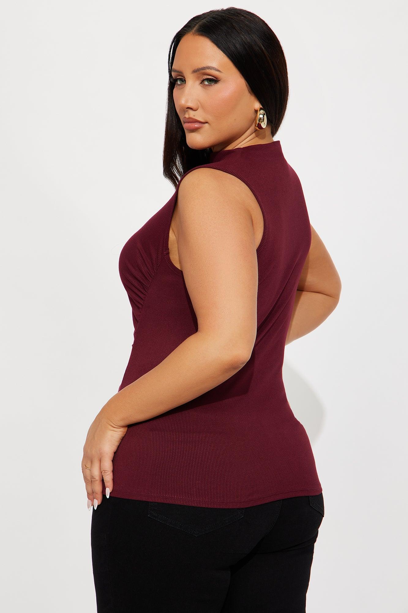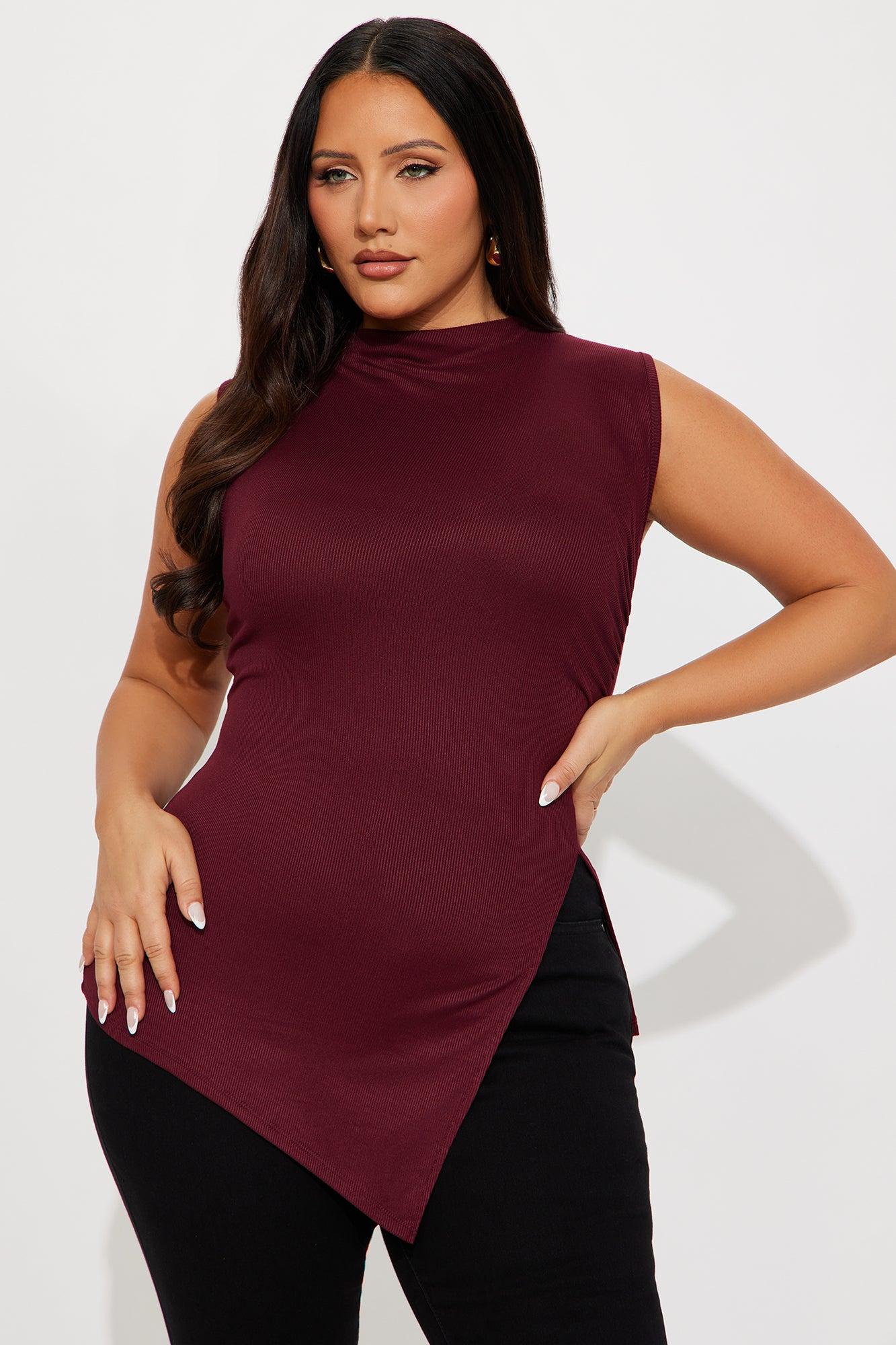 Available In Black, Burgundy, Chocolate, Ivory And Plum. High Neck Sleeveless Ruched Asymmetrical Stretch 95% POLYESTER 5% SPANDEX Imported