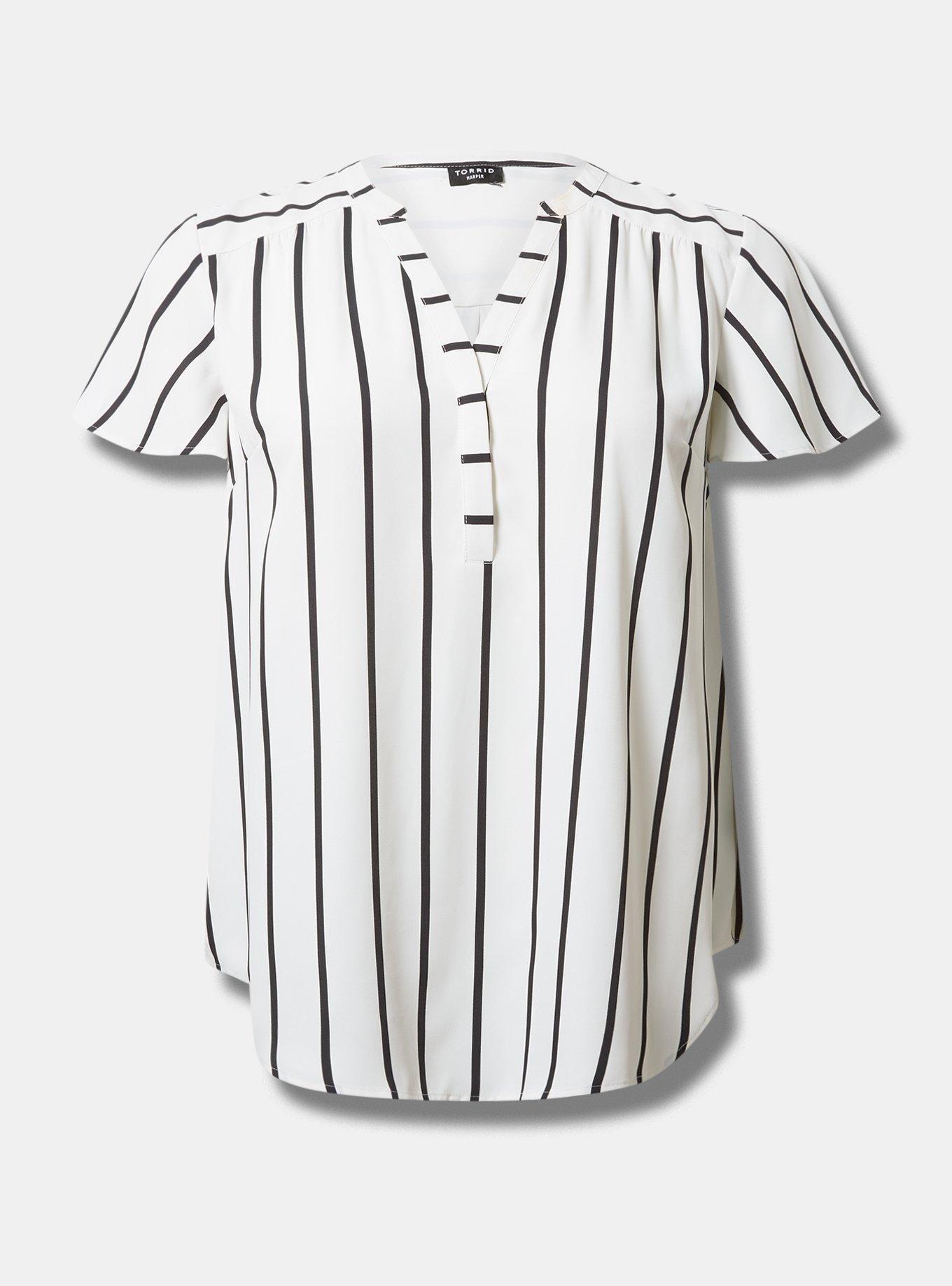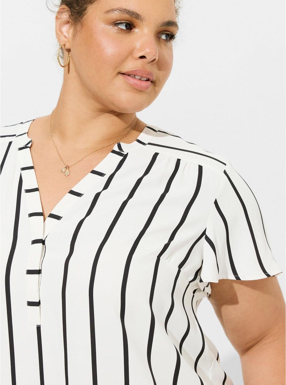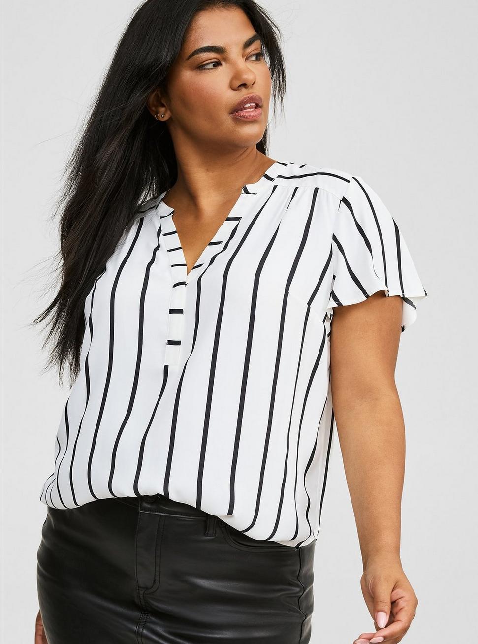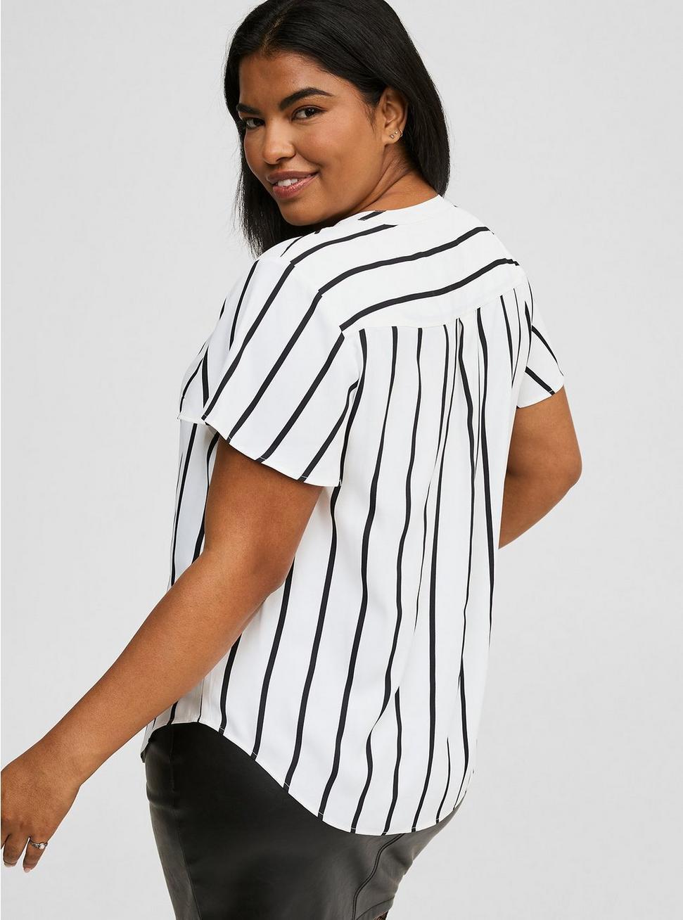 FITMeasures 30"" from shoulder (size 2).MATERIALS + CAREGeorgette woven fabric: Long-lasting, breathable, slightly sheer and super low-maintenance--what more could you ask for in a fabric?Stretch level: Minimum.100% polyester.Machine wash cold. Dry low.Imported.DETAILSCollarless.Short flutter sleeves.Functional chest pockets.