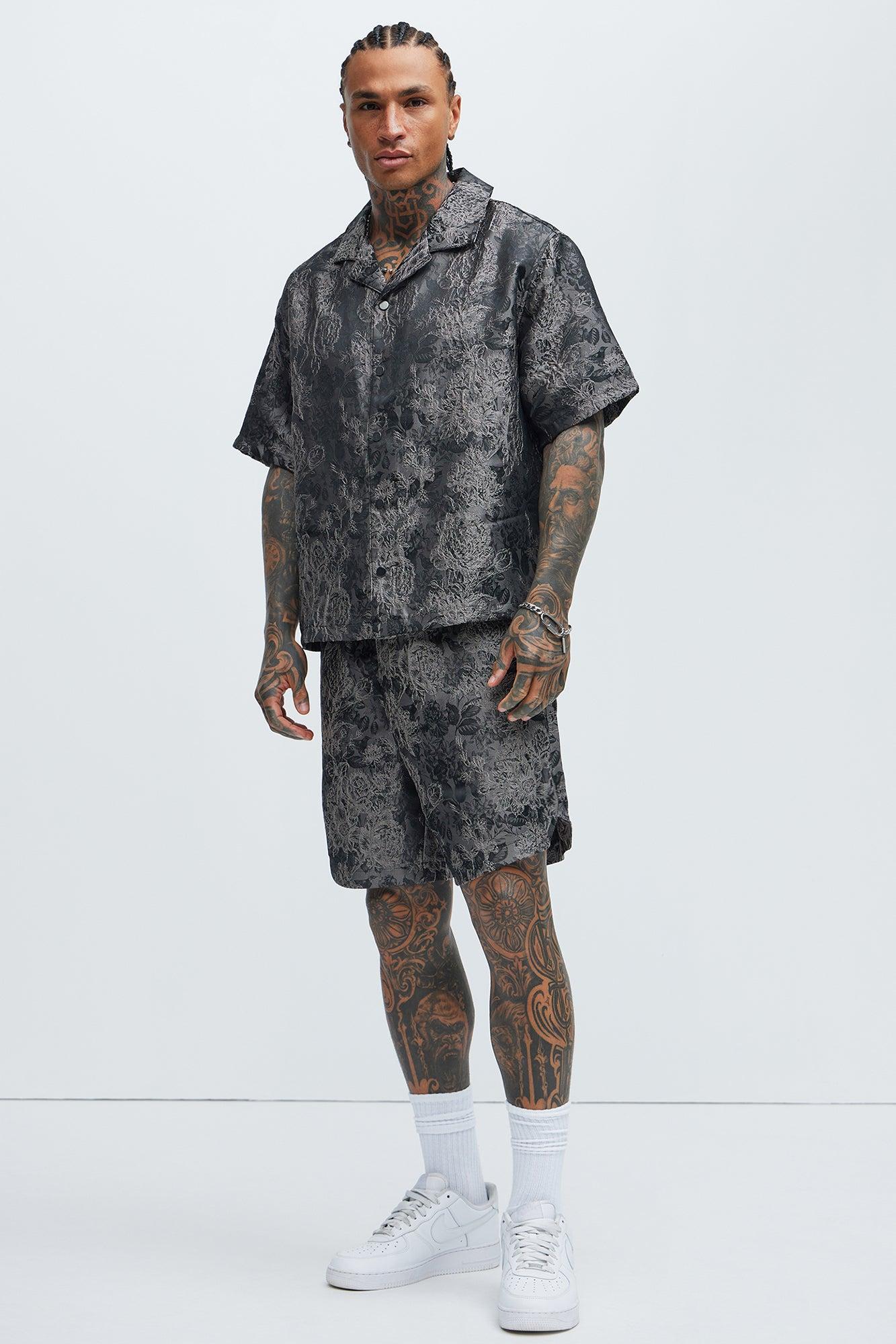 Available In Charcoal. Elastic Waist Drawstring Side Pockets Back Pocket Pair With "Harrison Jacquard Shirt" Shell: 98.5% Polyester 1.5% Spandex Imported California Proposition 65WARNING: Cancer and Reproductive Harm - www.P65Warnings.ca.gov.