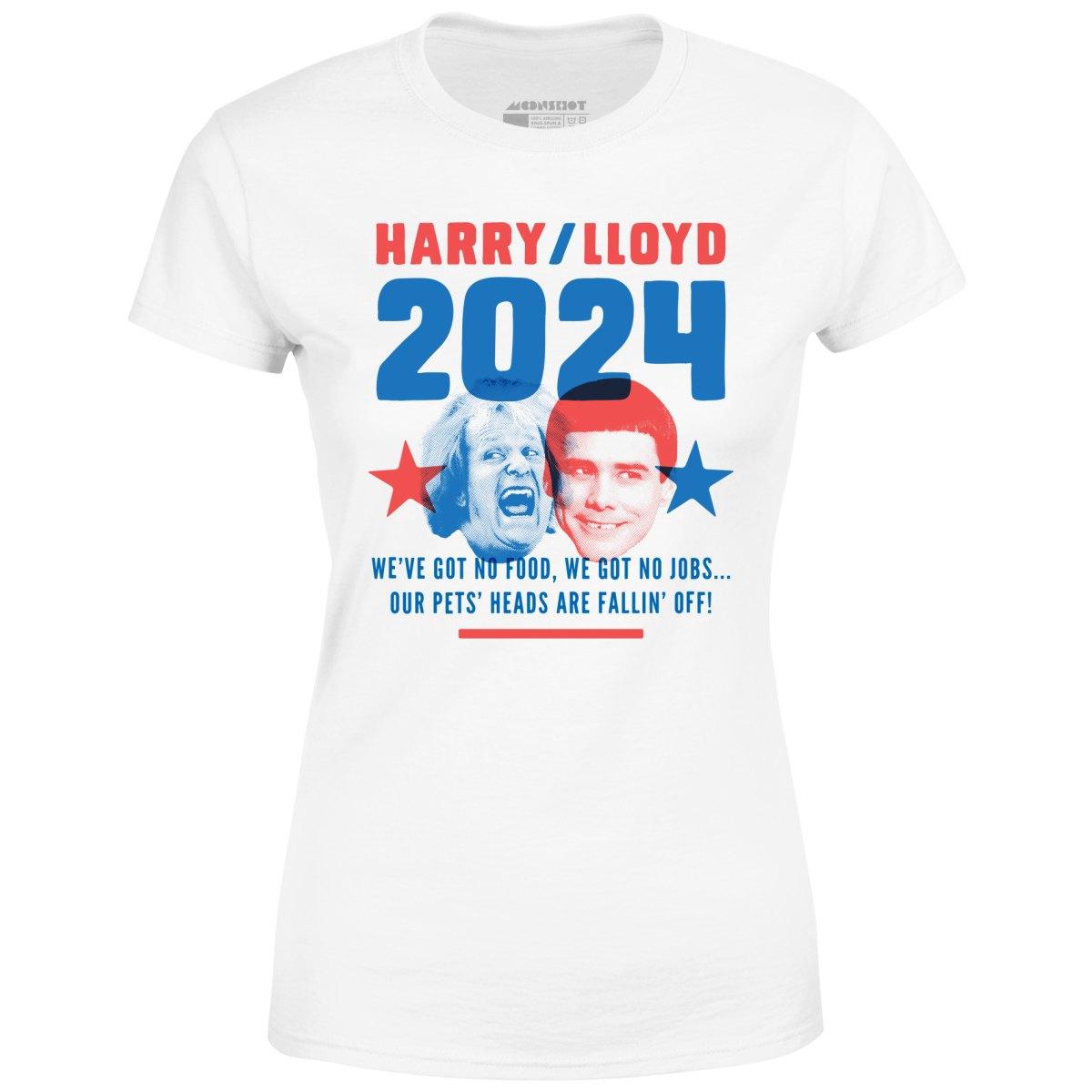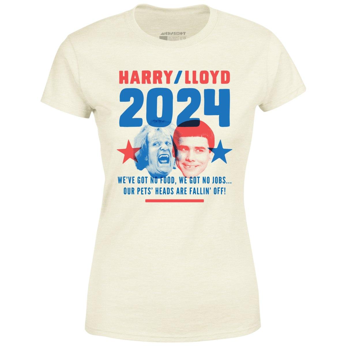 Harry & Lloyd in 2024! We've got no food, we got no jobs... our pets heads are fallin' off! Printed on our super soft 100% ringspun & combed cotton women's T-Shirt. Or upgrade to our Luxury 52/48 cotton/poly vintage heather edition for an even softer classic look. We print & ship all of our high quality graphic tees in the USA.