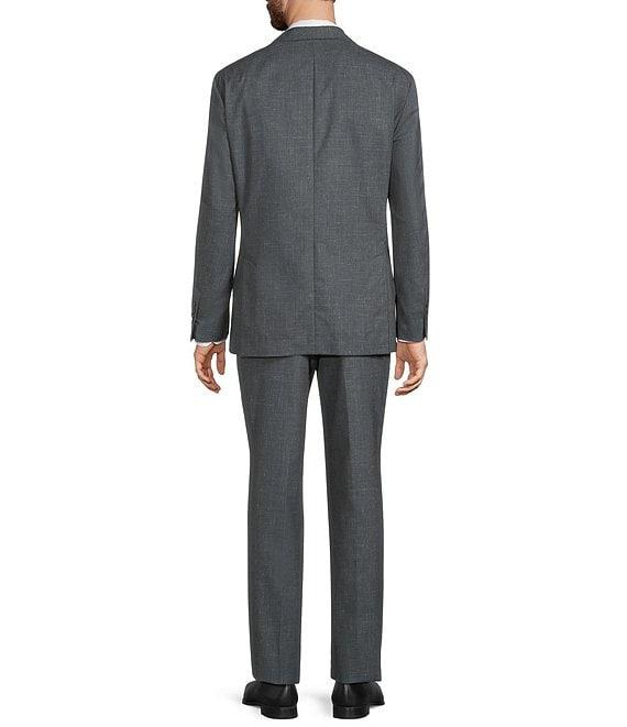 From Hart Schaffner Marx, this 2-piece suit features: Jacket: Notch lapel Long sleeves Side vent Pattern Partially lined Open patch pockets 2 button closure Wool/silk/linen/nylon Dry clean Pants: Flat front Pattern Front button/zip closure Wool/silk/linen/nylon Dry clean Imported.