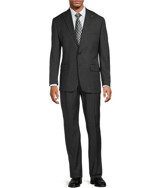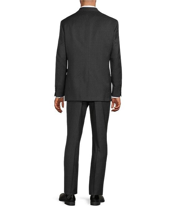 From Hart Schaffner Marx, this 2-piece suit features: Jacket: Notch lapel Long sleeves Center vent Plaid pattern Besom/flap pockets 2 button closure Wool/elastane Dry clean Pants: Pleated Plaid pattern Front button/zip closure Wool/elastane Dry clean Imported.