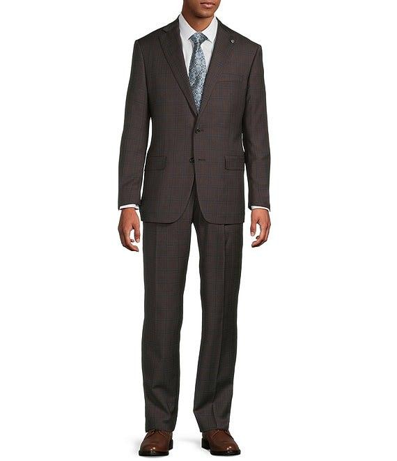 From Hart Schaffner Marx, this 2-piece suit features: Jacket: Classic fit Notch lapel Plaid Center vent Besom flap pocket 2-button closure Wool Dry clean Pants: Pleated Plaid Button closure with zip fly Wool Dry clean Imported.