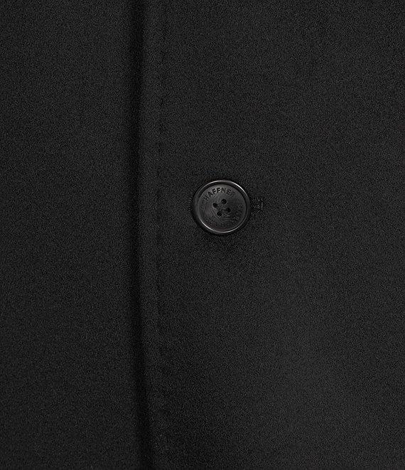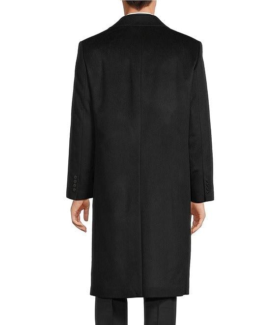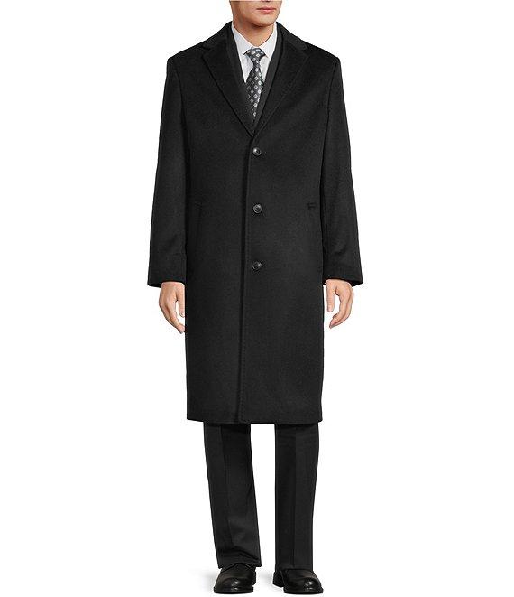 From Hart Schaffner Marx, this topcoat features: Notch lapel Long sleeves 3-button closure Center vent Slash pockets Pick stitching Full length Picket stitching on the collar Center front and pocket welts Approx. 44" for size 40R Cashmere fabric Dry clean Imported.
