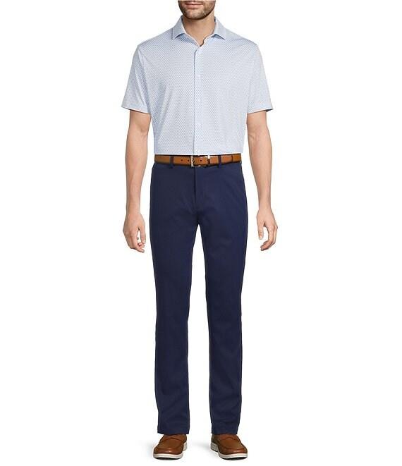 From Hart Schaffner Marx, this shirt features: Allover diamond print Spread collar Short sleeves Button-front closure UV protection Quick dry Moisture-wicking Easy care 4-way stretch Polyester/spandex Machine wash warm/tumble dry Imported. All the luxury you would expect from a prestigious American heritage brand with the performance features that make a garment timeless and sustainable.