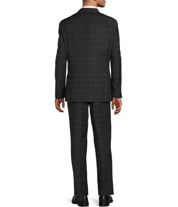 From Hart Schaffner Marx, this 2-piece suit features: Jacket: New York modern fit Notch lapel Long sleeves Single breasted Side vent Plaid print Half lined, soft construction Besom flap pockets 2-button front closure Pants: Flat front Plaid print Straight leg Front button/zip closure Care: Wool/lycra Dry clean Imported.