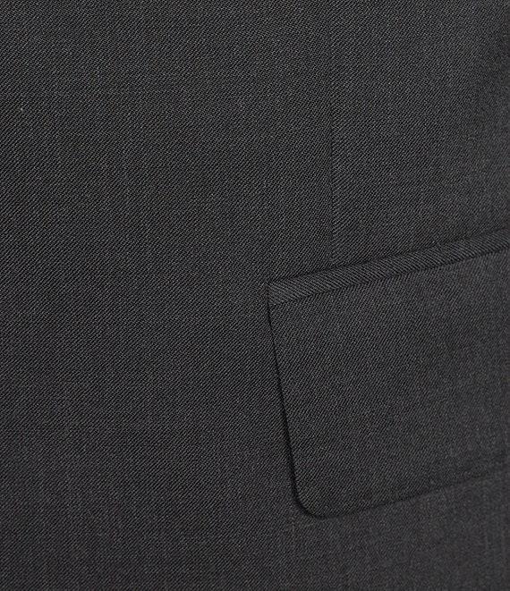 From Hugo Boss, this 2-piece suit features: Jacket: Fancy pattern Modern fit Single-breasted Peak-lapel 2-button closure Besom/flap pocket Pick stitching Side vents Pants: Flat-front 2 front hand pockets 2 back buttoned pockets Zip/button-front closure Unhemmed Care: Wool Dry clean Imported.