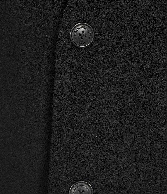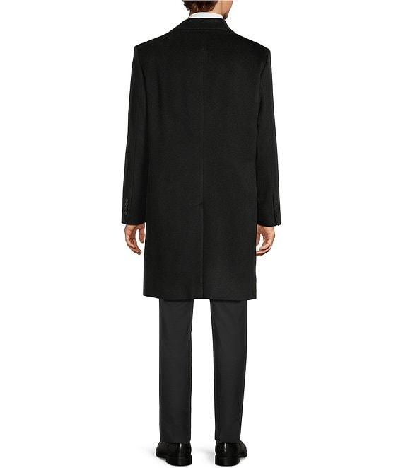 From Hart Schaffner Marx, this topcoat features: Notch lapel Long sleeves 3-button closure Center venter Slash pocket Pick stitching Full length Pick stitching on the collar Lapel Center front and pocket welts Approx. 44" for size 40R Wool/cashmere Dry clean Imported.