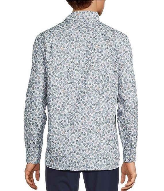 Hart Schaffner Marx The Reserve Collection Albini Long Sleeve Leaf Print Spread Collar Coat Front Shirt