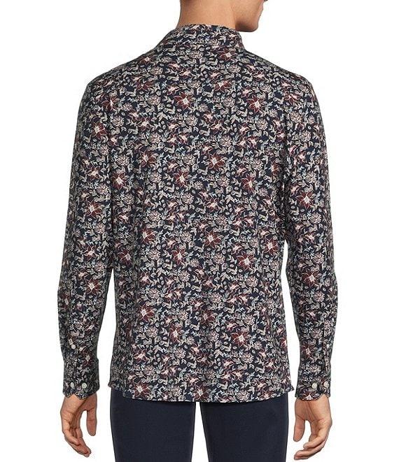 From Hart Schaffner Marx, this sport shirt features: Spread collar Long sleeves with cuffs Button-front closure Detailed stitching Large floral motif Shirttail drop hemline Albini 4FLEX fabrication Cotton/elastane Machine wash/tumble dry Imported.