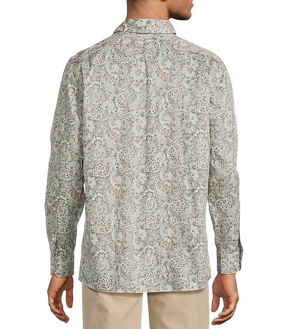 From Hart Schaffner Marx, this sport shirt features: Paisley print Spread collar Long sleeves Button-front closure Detailed stitching Shirttail drop hemline 100% American grown cotton Machine wash/tumble dry Imported.