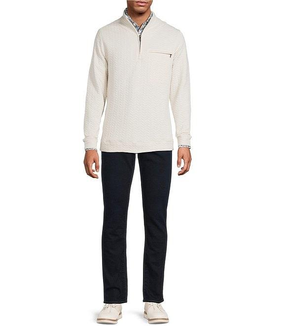 From Hart Schaffner Marx, this quarter-zip features: Solid Pima knit fabrication Mock neckline Long sleeves with banded cuffs Quarter-zip closure Detailed stitching Straight banded hemline Pullover construction Pima cotton/polyester Machine wash/tumble dry Imported.