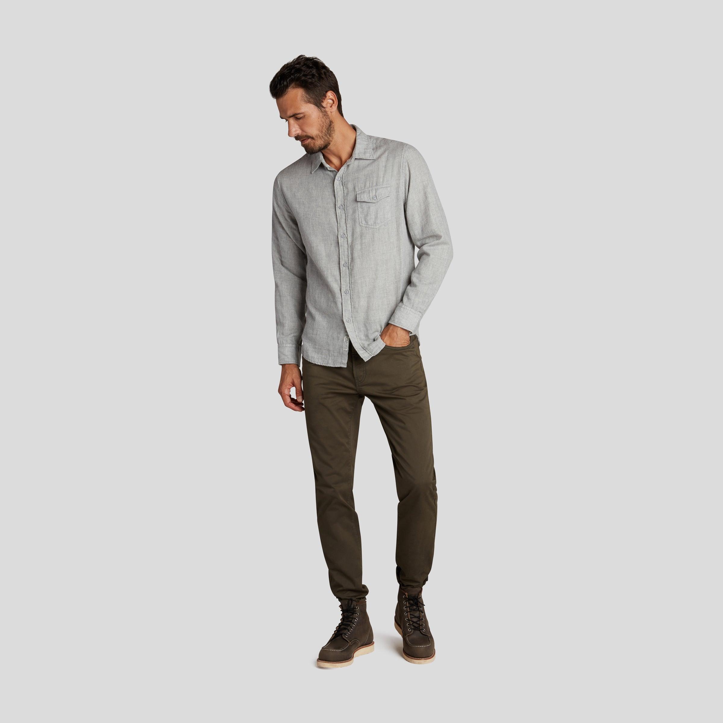 Our most beloved Grayers originals are bestsellers for a reason. These all seasons game changers come from the finest top-dyed heather yarns, which we custom weave into an exclusive double cloth fabric that reveals a second field on the reverse. Vibrant, fade-resistant colors? Check. Top-notch quality and signature modern fit? Check and check. Wear it unbuttoned with jeans over a solid tee or Henley, and let attractive people throw double takes at the lining all day long. Or team it with a pair of crisp khakis and a dark blazer to bring some fire to your formal game. Finished with a spread collar to complement your chiseled jaw. The Model is also wearing: Burlington 5 Pocket Stretch Corduroy - Slate Gray, Alternative Stretch Slim Fit 5 Pocket - Dark Olive. Model: Artem is wearing size medium and is 6'. ----Details---- Spread collar Single chest patch pocket with button through flap Fisheye buttons Reinforced gussets 100% Cotton Imported ----Materials---- 100% Cotton Outer layer- premium heather cotton yarn Under layer- soft contrasting gauze like cotton ----Size & Fit---- Measuring Method: All measurements are in inches and based on a “flat” garment, as shown below. For comparison with one of your existing garments, please lay garment on a flat surface and follow the key measurement points. For chest and neck, if you double the flat measurement, you will get close to the full body measurement. Modern Fit ----Care---- Machine Wash Warm With Like Colors Do Not Bleach Tumble Dry Low Use Cool Iron If Necessary