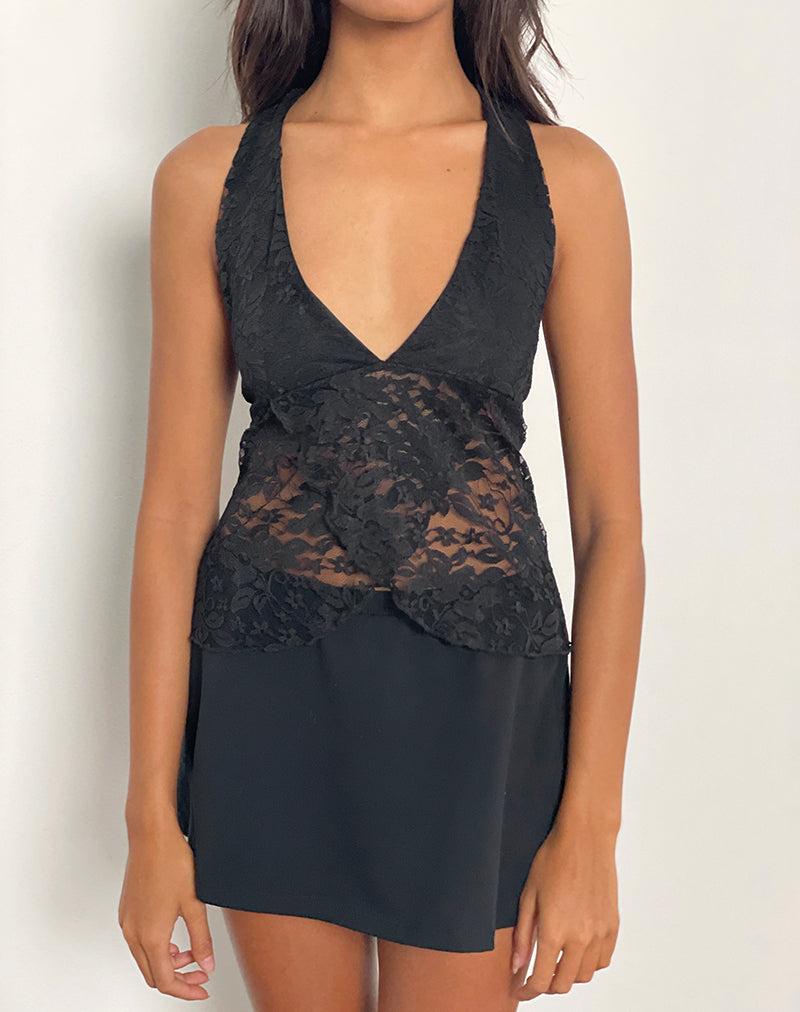 Harumi Halterneck Top in Lace Black Female