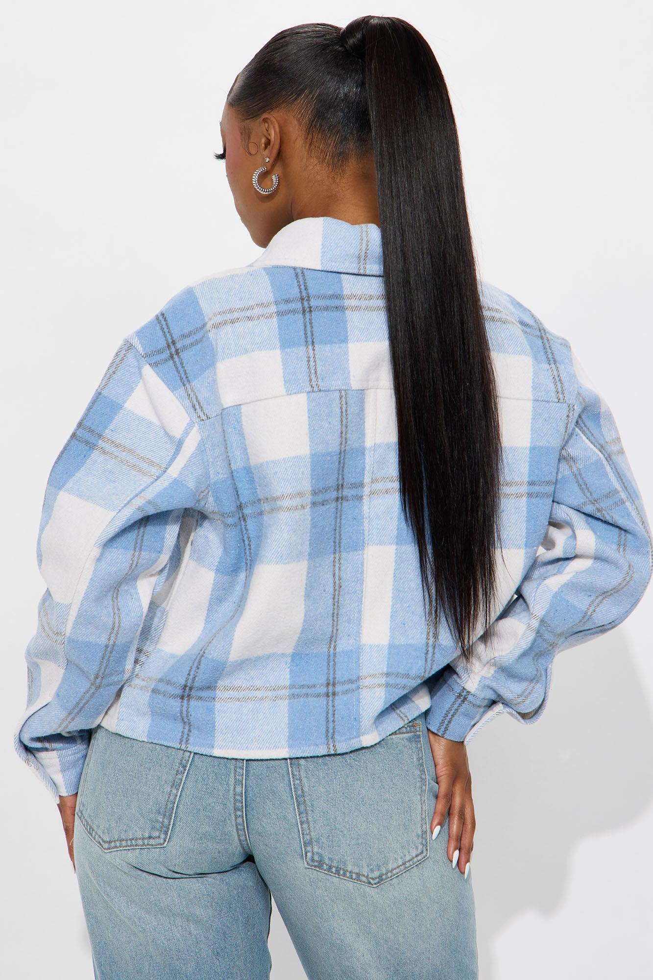 Harvest Bloom Plaid Shacket - Blue Female