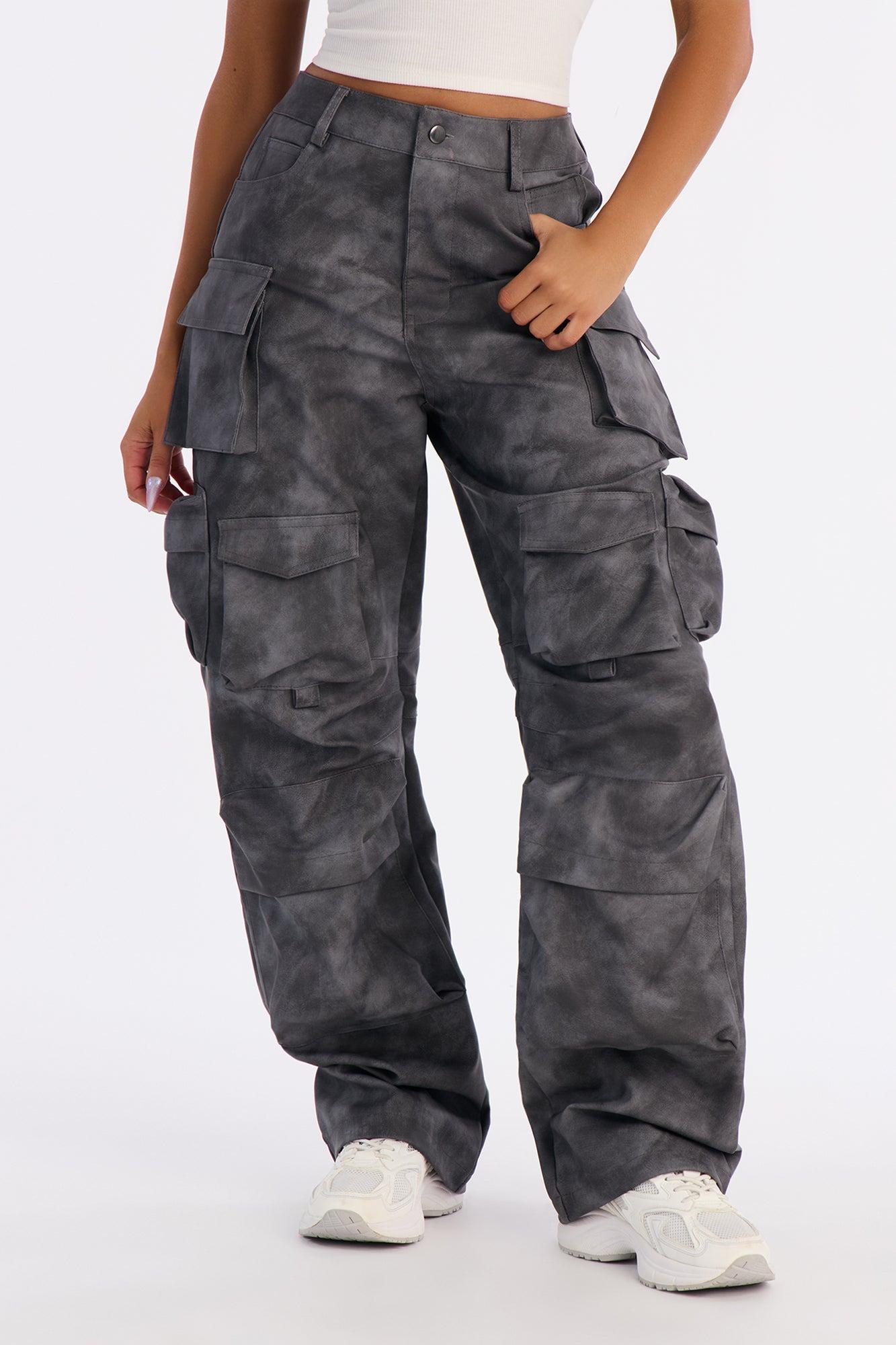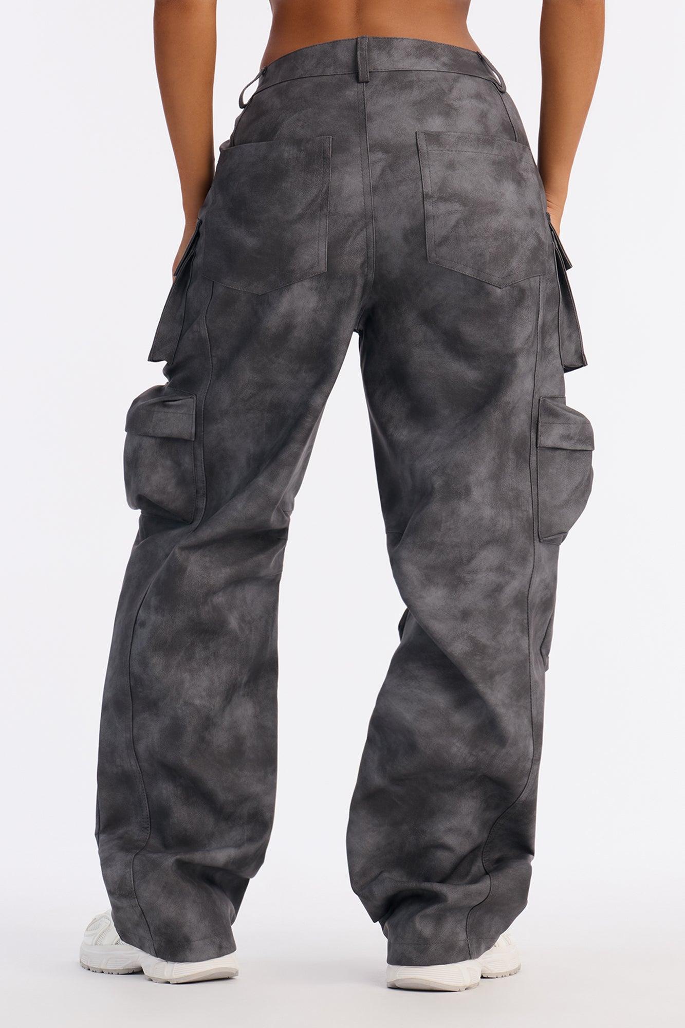 Harvey Washed Faux Leather Cargo Pant - Black Wash Female