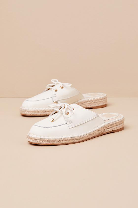 This summery mule from Dolce Vita is ready for lake days, farmers markets, and time spent strolling through the sunshine. A smooth leather upper shapes a slide-on, loafer-style silhouette with a rounded upper, a raffia-wrapped midsole, and a lace-up detail at the vamp. Gold eyelet and matching aglets complete the chic look.