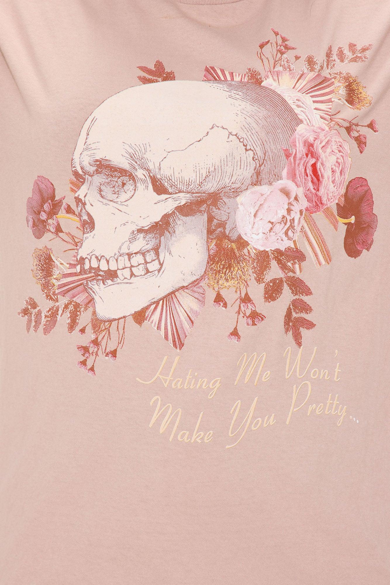 Hating Me Skull Washed Oversized Tee - LightBrown