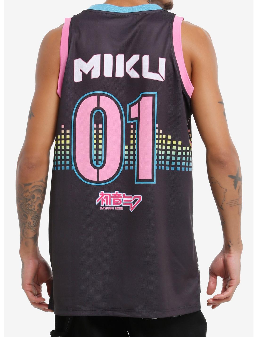 Bring the concert to the court with this Hatsune Miku basketball jersey! Featuring the virtual singer performing on stage, plus "Miku" and "01" printed on the back.100% polyesterWash cold; dry lowImportedListed in men's/unisex sizesModel is 6'1''Model wears size Medium