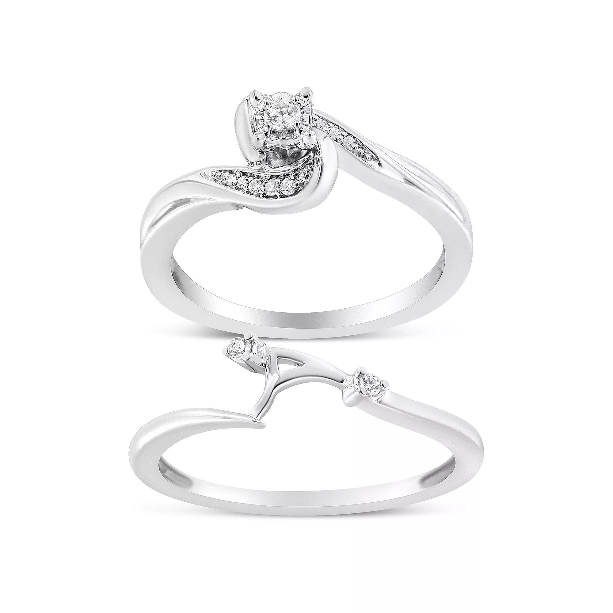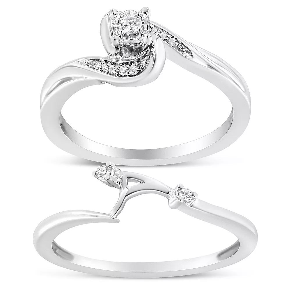 Haus of Brilliance Sterling Silver 1/10 Carat T.W. Diamond Swirl & Bypass Engagement Ring Set, Women's,  Product Image