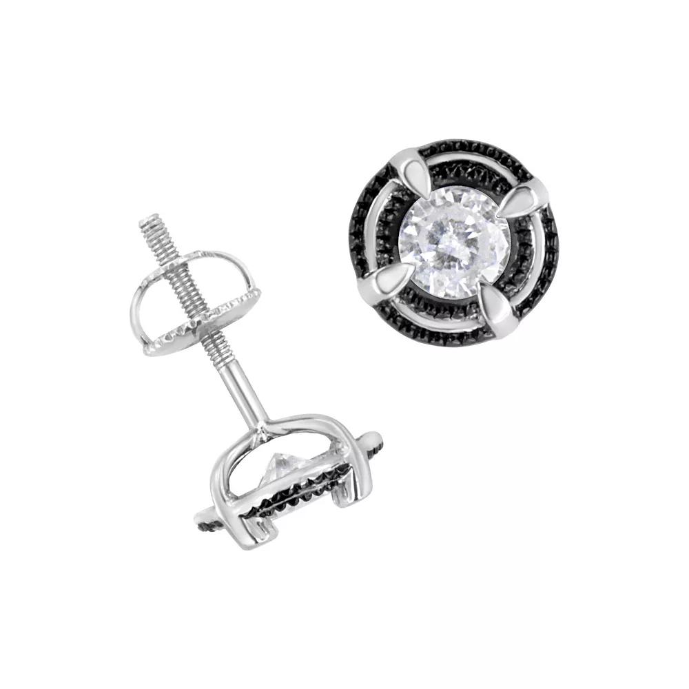 Delicate milgrain texture traces the edge of these stunning earrings crafted of genuine .925 sterling silver. Diamonds are set at the center of the 4-prong design of each of these round stud earrings, for 1.00 carat of diamonds in all. A screw back keeps these lovely diamonds earrings secure on your pierced ears. | Haus Of Brilliance .925 Sterling Silver 1 Cttw Diamond Modern 4-Prong Solitaire Milgrain Stud Earrings (H-I Color, I2-I3 Clarity)