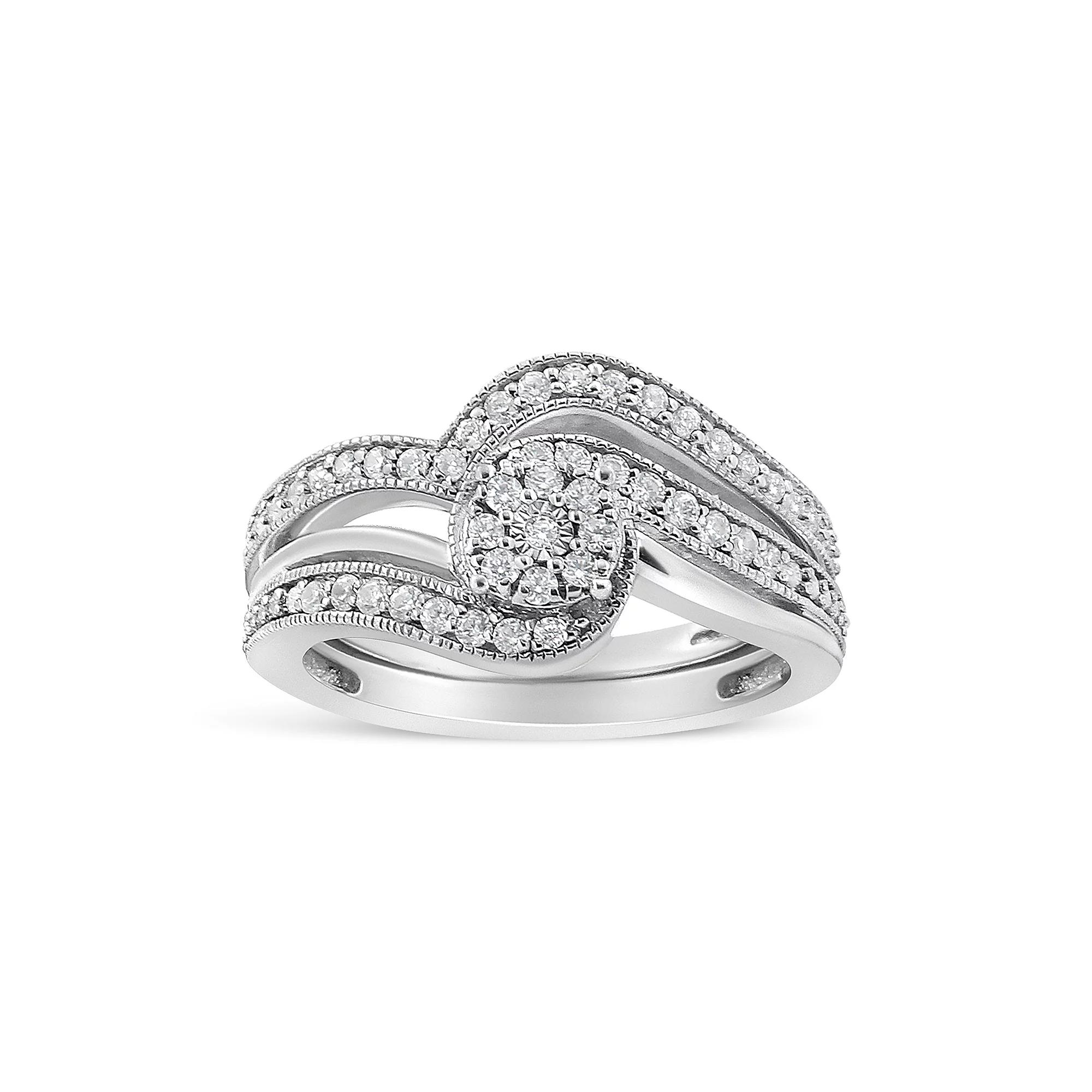 Timeless beauty is effortless with the stunning elegance of this sterling silver diamond bypass engagement ring set from Haus of Brilliance. Click on this JEWELRY & WATCHES GUIDE to learn about fit, styles, materials and more! Timeless beauty is effortless with the stunning elegance of this sterling silver diamond bypass engagement ring set from Haus of Brilliance. Click on this JEWELRY & WATCHES GUIDE to learn about fit, styles, materials and more! FEATURES Ring width: 4mm Shank style: twist Band fit: comfort fit Nickel free Metal: sterling silver Plating: rhodium Finish: polished Packaging: boxedDIAMOND DETAILS Total weight: 1/3 ct. Center stone weight: 1/10 ct. Diamond color grade: I-J Diamond clarity grade: I3 Shape: round brilliant Setting: illusionSETUP INFORMATION Includes engagement ring & wedding band Size: 6. Color: White. Gender: female. Age Group: adult.