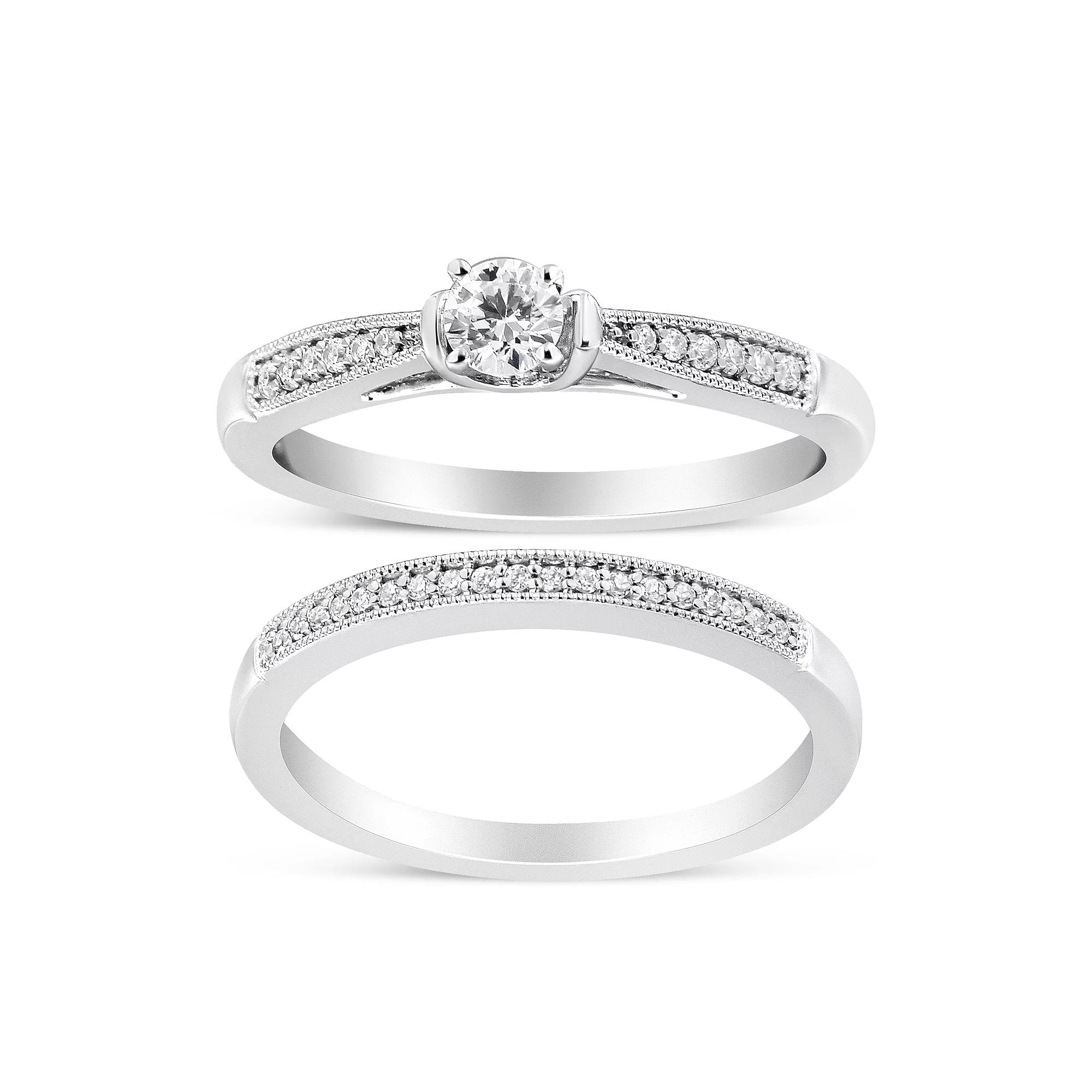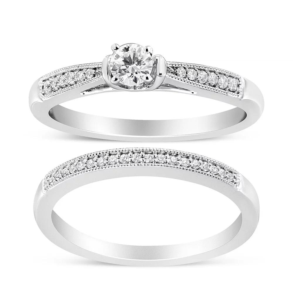 Choose classic charm with the Haus of Brilliance Sterling Silver 1/3 Carat T.W. Diamond Classic Engagement Ring Bridal Set. This set offers a timeless design for a lasting impression. Click on this JEWELRY & WATCHES GUIDE to learn about fit, styles, materials and more! Choose classic charm with the Haus of Brilliance Sterling Silver 1/3 Carat T.W. Diamond Classic Engagement Ring Bridal Set. This set offers a timeless design for a lasting impression. Click on this JEWELRY & WATCHES GUIDE to learn about fit, styles, materials and more! FEATURES Width: 1.5 mm Band fit: comfort fit Metal: sterling silver Finish: polished Packaging: boxed NADIAMOND DETAILS Total weight: 1/3 ct. Color grade: I-J Clarity: I3 Shape: round Setting: prong Diamond weights are approximate. Diamond Total Weights may vary between .01 and .13 ct. Some diamonds consist of fewer than 17 facets. Gemstones may have been treated to enhance their appearance. Special care may be required. Please visit our Gemstone Treatment & Special Care Guide for more information. Image(s) may be enlarged to show detail. Please note, due to the high value of this item, a signature may be required upon delivery. Size: 7. Gender: female. Age Group: adult.