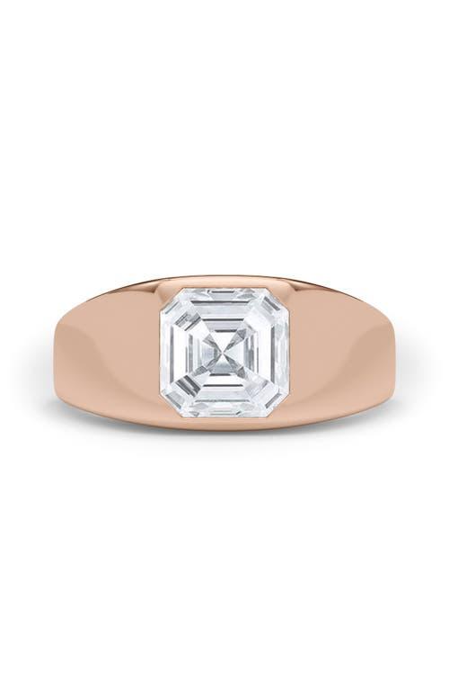 HauteCarat Men's Asscher Cut Lab Created Diamond Signet Ring in 2.00 Ctw 18K Rose Gold at Nordstrom, Size 10.5