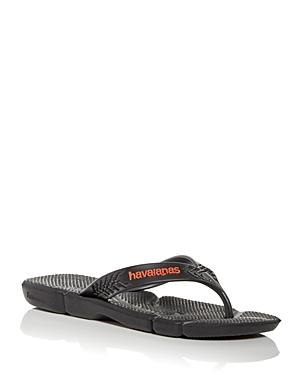 These Havaianas Power 2.0 flip flops combine a logo strap with a cushioned footbed, and an angled sole with traction. Rubber upper Thong toe Slips on Cushioned footbed Man-made lining Synthetic sole Imported. Mens Shoes - Contemporary Lifestyle > Havaianas > Saks Fifth Avenue > Barneys. Havaianas. Color: Black. Size: 9.