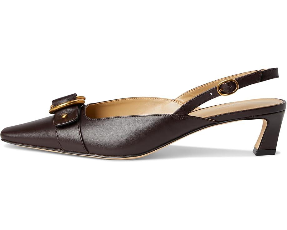 MAYSLI Brown Suede Buckle Detail Slingback Pumps