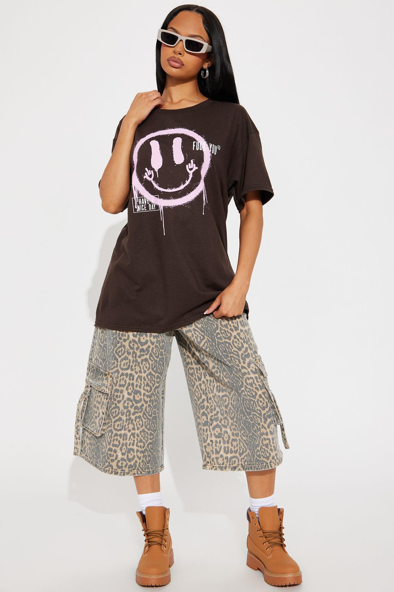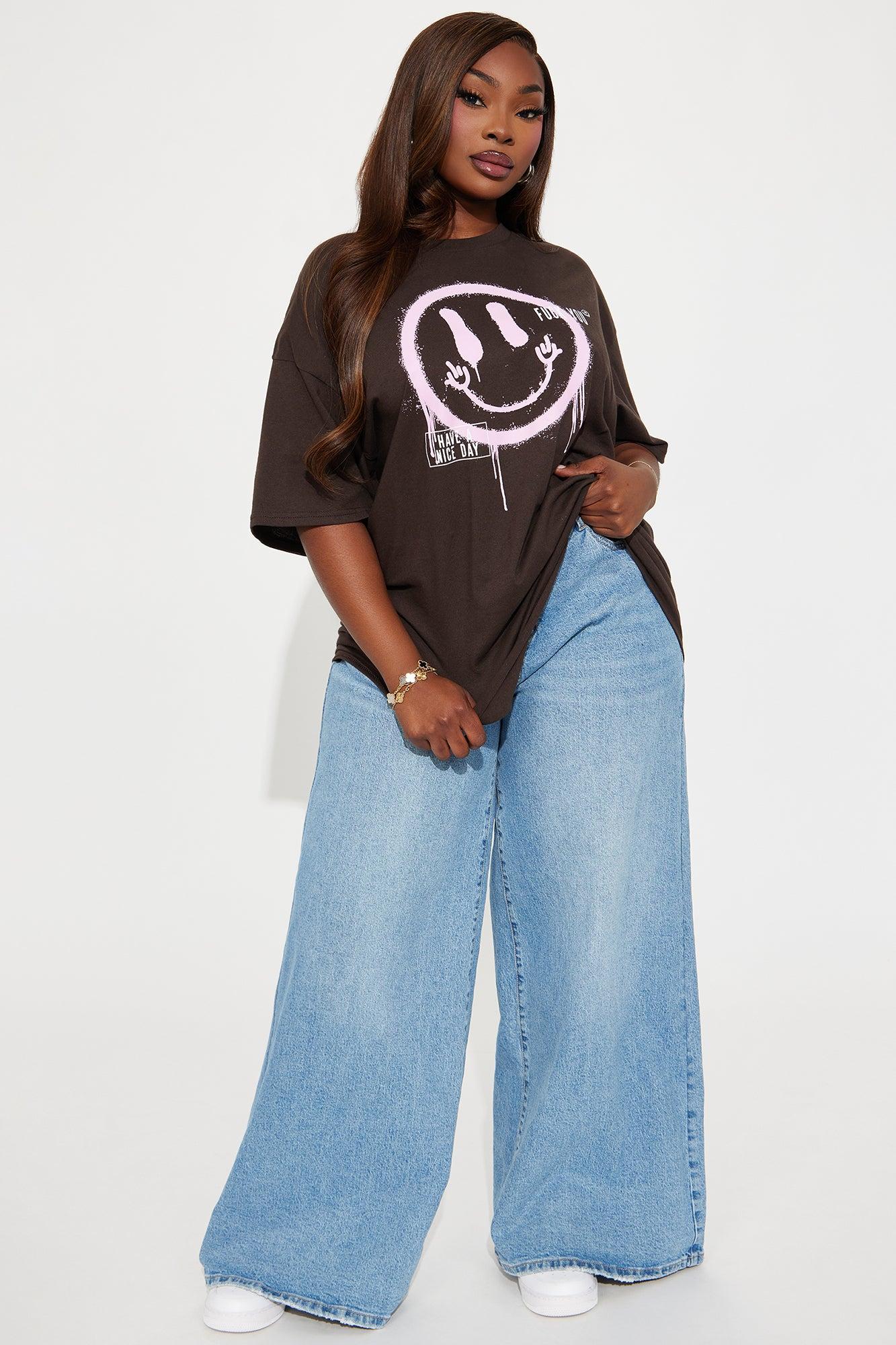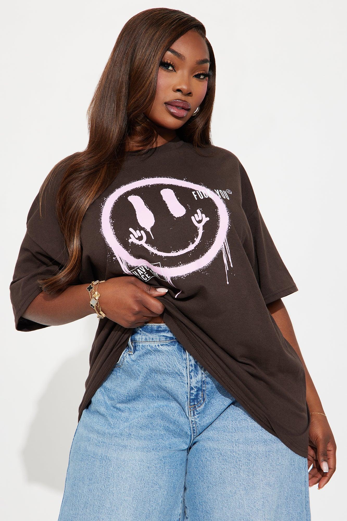 Available In Brown. Tshirt Crew Neck Short Sleeve Front Screen Oversized Stretch 100% Cotton Imported