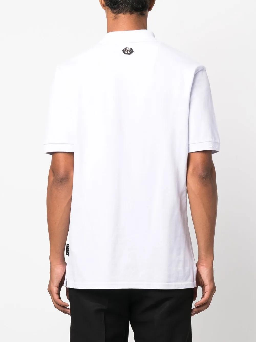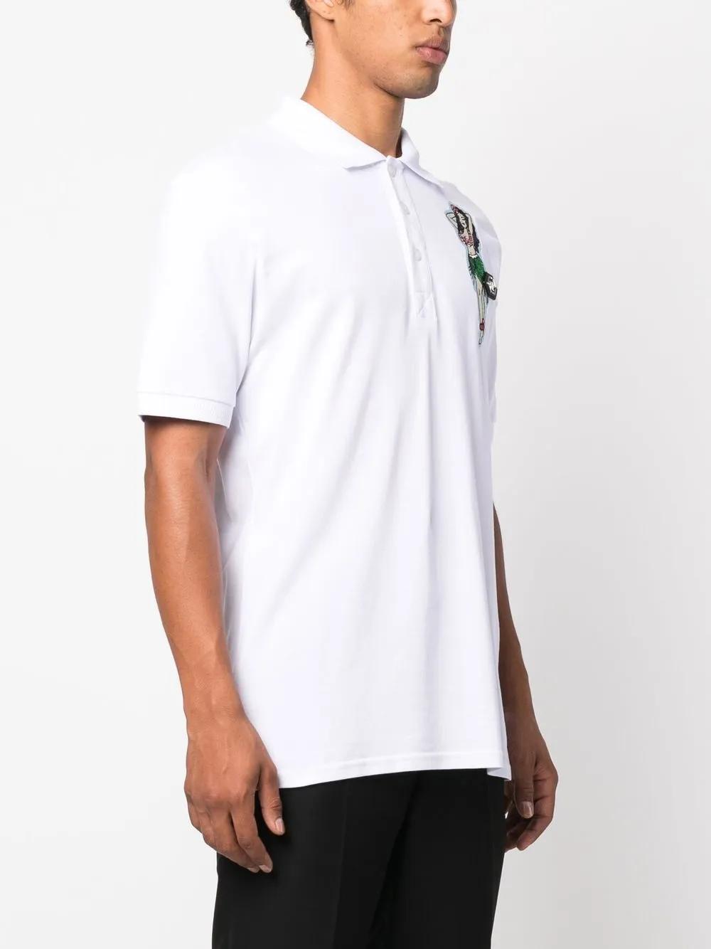 white/multicolour cotton embroidered design logo patch at the chest polo collar front button placket short sleeves straight hem