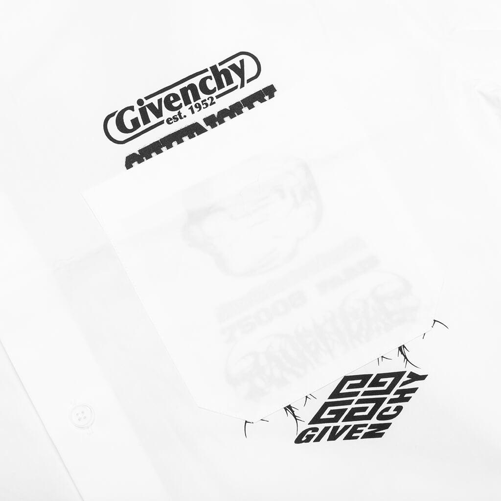 Luxury brand Givenchy introduces the Hawaii Shirt w/ Front Pocket. Composed of 100% silk, this elevated silhouette is highlighted by the abstract allover pattern. The garment features a button-down closure and a pointed collar. A patch pocket on the chest completes the look. 100% Silk Made in Italy Button closure Patch pocket Abstract pattern Pointed collar Givenchy branding Style No: BM610814M6