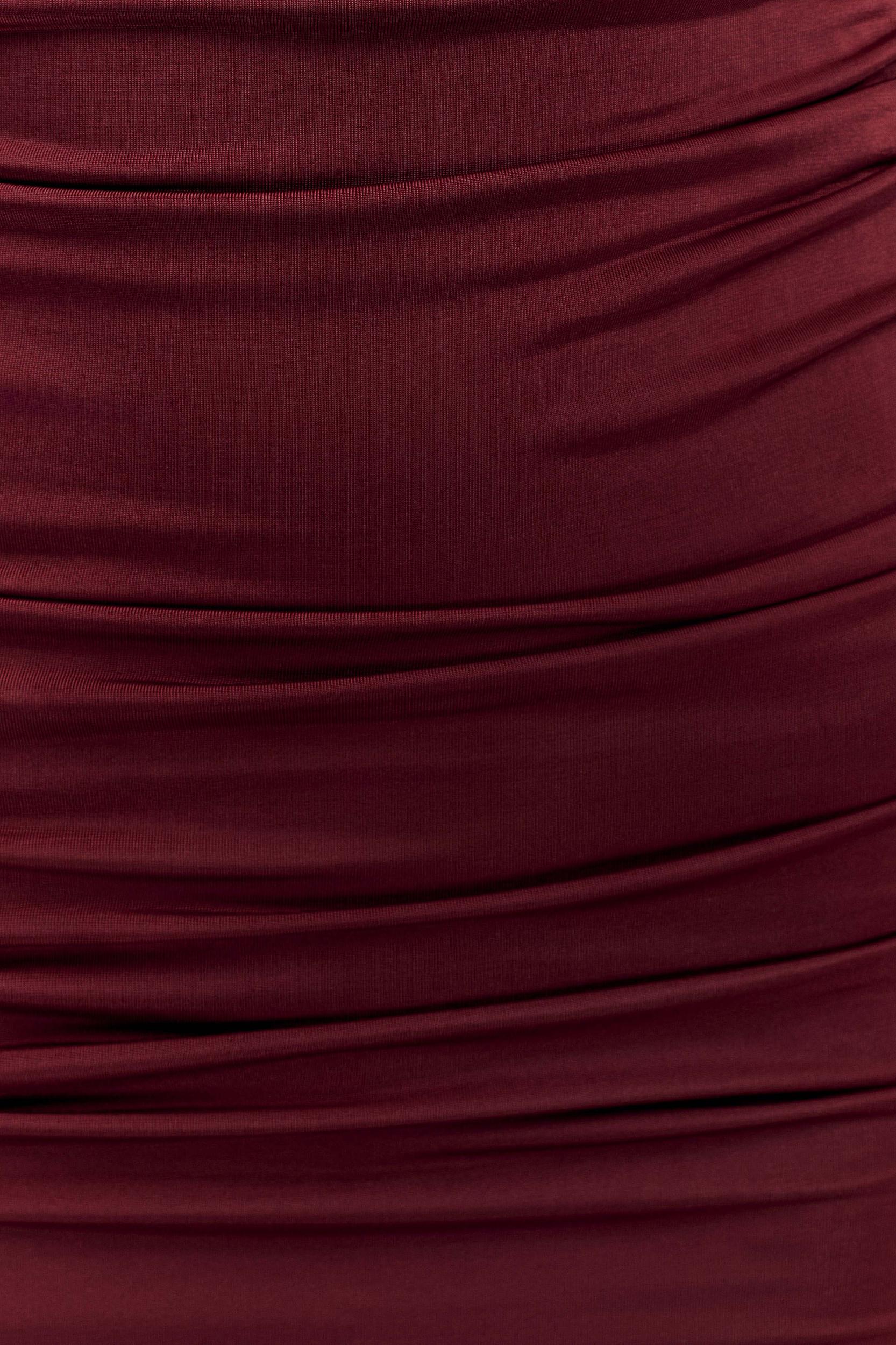 Undeniable drama. The HAYDEN Long Sleeve Plunge Mini Dress is a masterclass in modern sophistication. Designed with a daring deep V-plunge neckline and sharp shoulder pads for structure, this maxi silhouette balances boldness with fluid ease. The gathered waist detail softly defines your shape, while the full lining ensures a smooth finish. With long sleeves and a relaxed fit, this dress is your go-to for statement evenings with a touch of nonchalance.