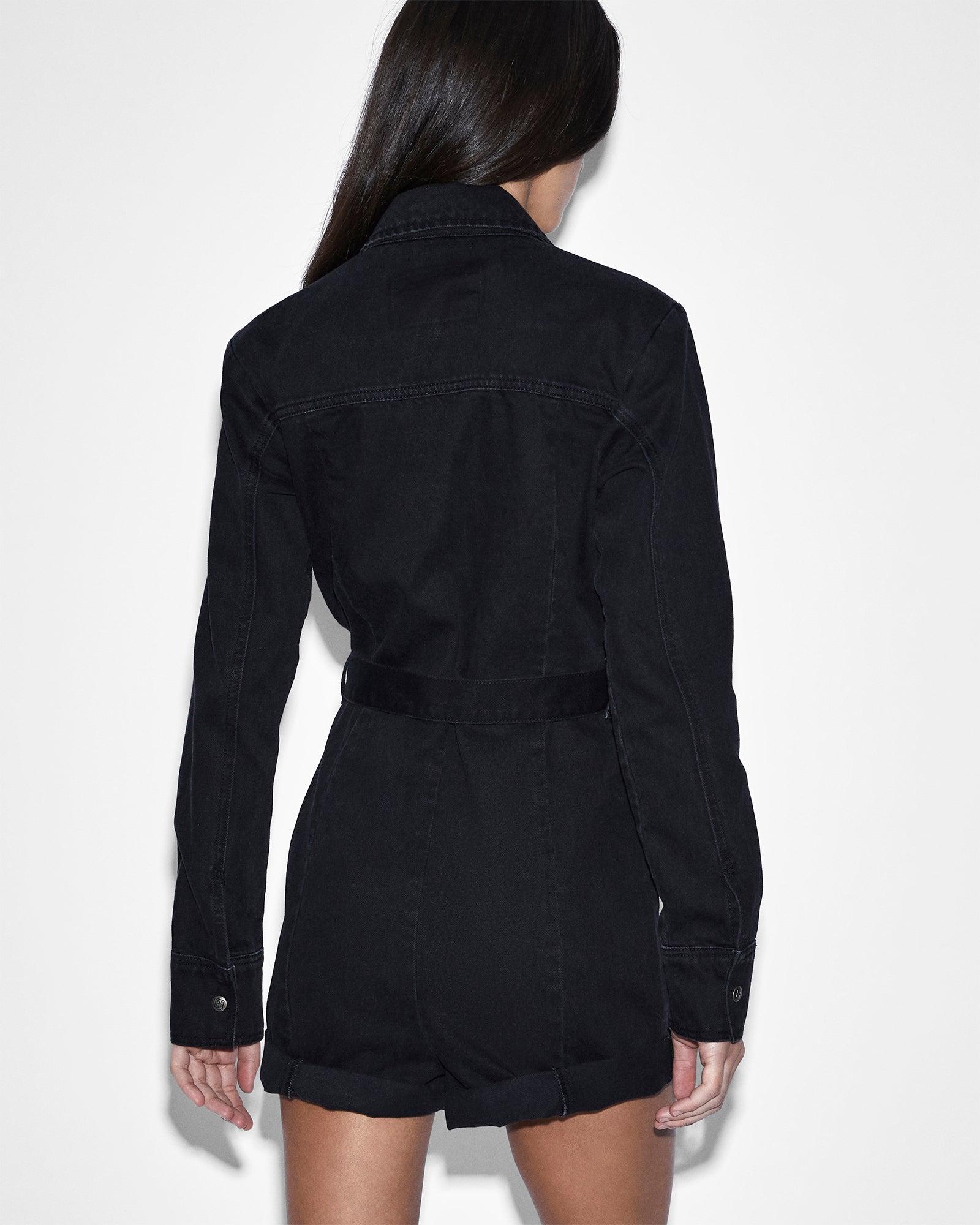 The Hazard Short Boilersuit Jet Blk is made from a premium European rigid denim in a heavy stonewashed, overdyed colour. This design is a relaxed fit featuring long sleeves, rolled up short hem, utility patch pockets and a detachable double D-ring waistbelt. The boilersuit is detailed with our Ksubi t-box print and branded snap buttons. Cool machine wash with like colours, wash inside out, do not bleach, remove promptly after wash, do not tumble dry, cool iron on reverse, do not iron directly onto prints or metal hardware, colour may transfer onto other garments and upholstery.