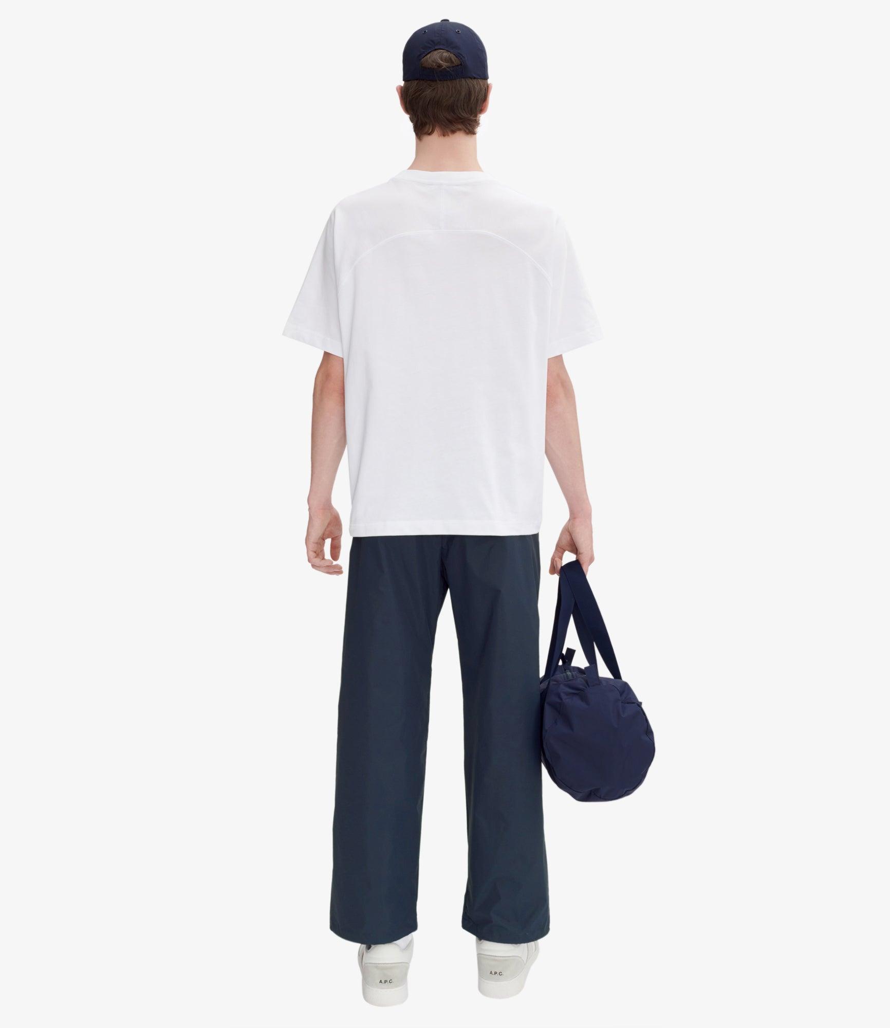 A.P.C. x Asics pants.- Straight cut with a loose fit. - Mid-rise. - Elasticated waist with tone-on-tone drawstrings. - Two side pockets and two back pockets. - Multicolored A.P.C. and Asics logo on the front left pocket. - Wear with the Meadow jacket.