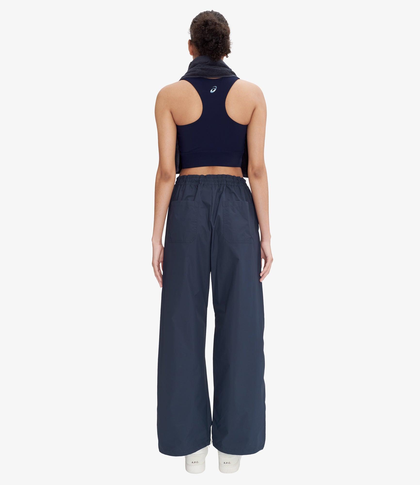A.P.C. x Asics pants.- Unisex sizing. For women, we recommend that you order one size smaller than usual.- Straight cut with a loose fit. - Mid-rise. - Elasticated waist with tone-on-tone drawstrings. - Two side pockets and two back pockets. - Multicolored A.P.C. and Asics logo on the front left pocket. - Wear with the Meadow jacket.