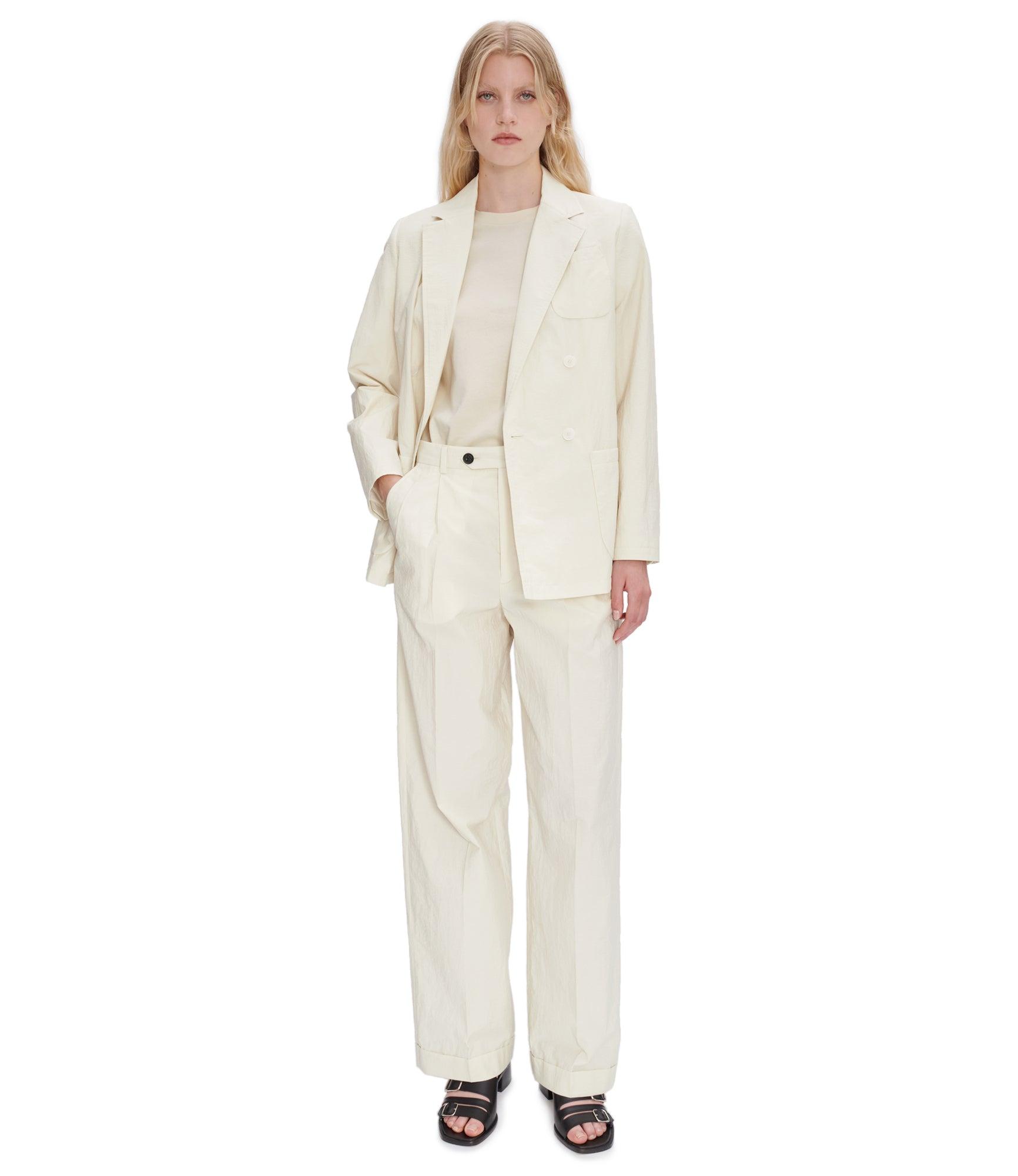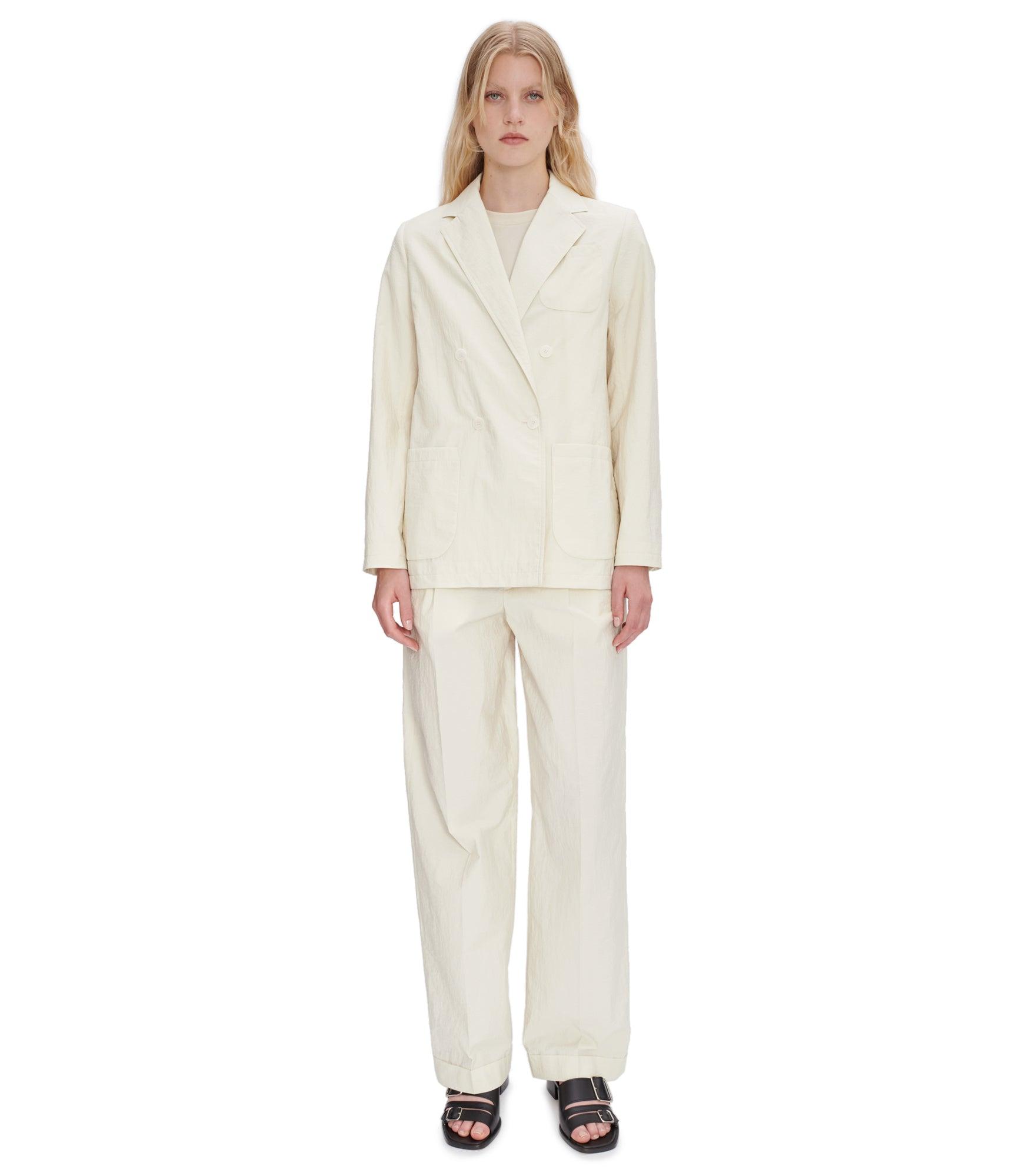 - Soft material with a crinkled aspect, reminiscent of seersucker.