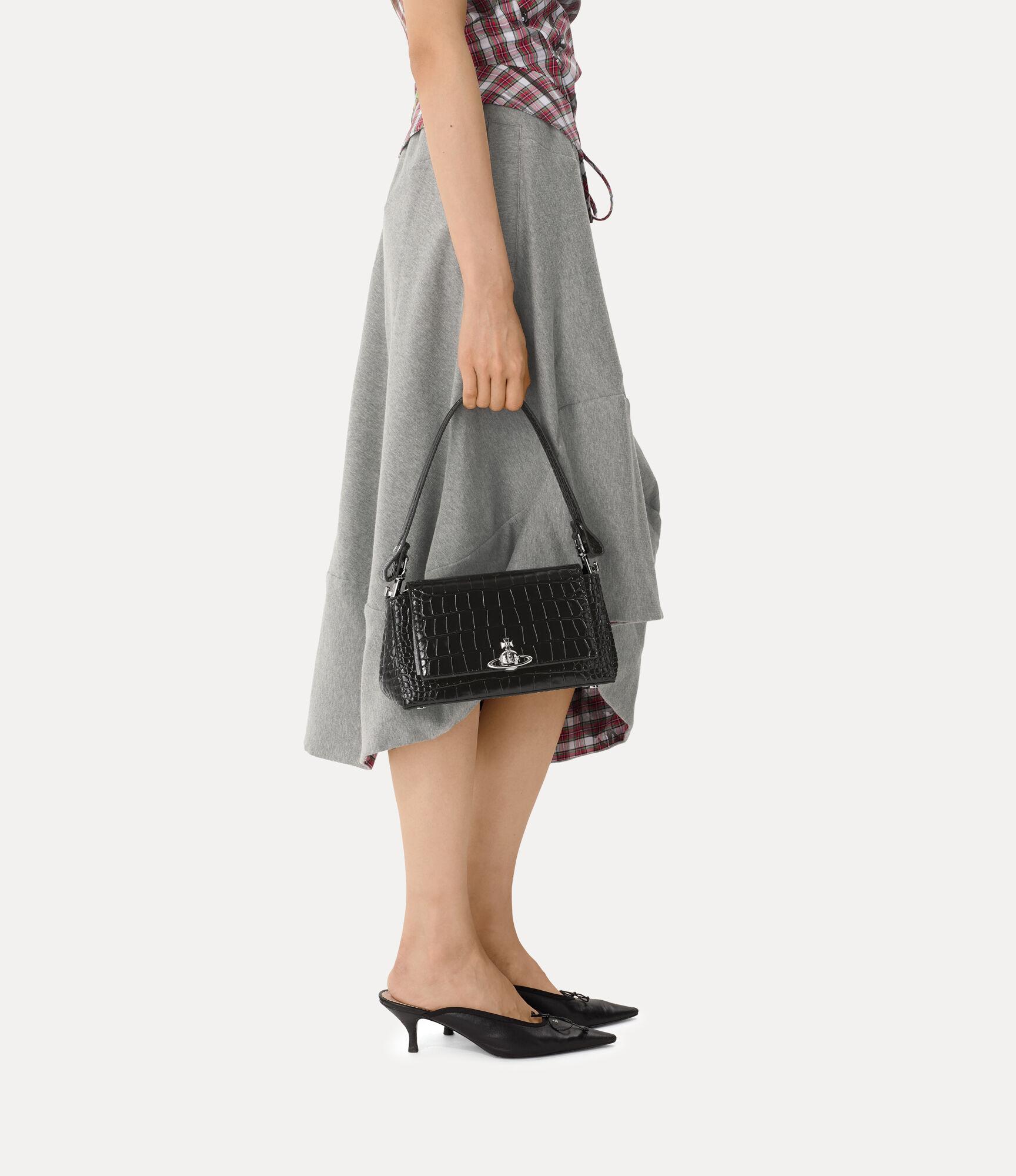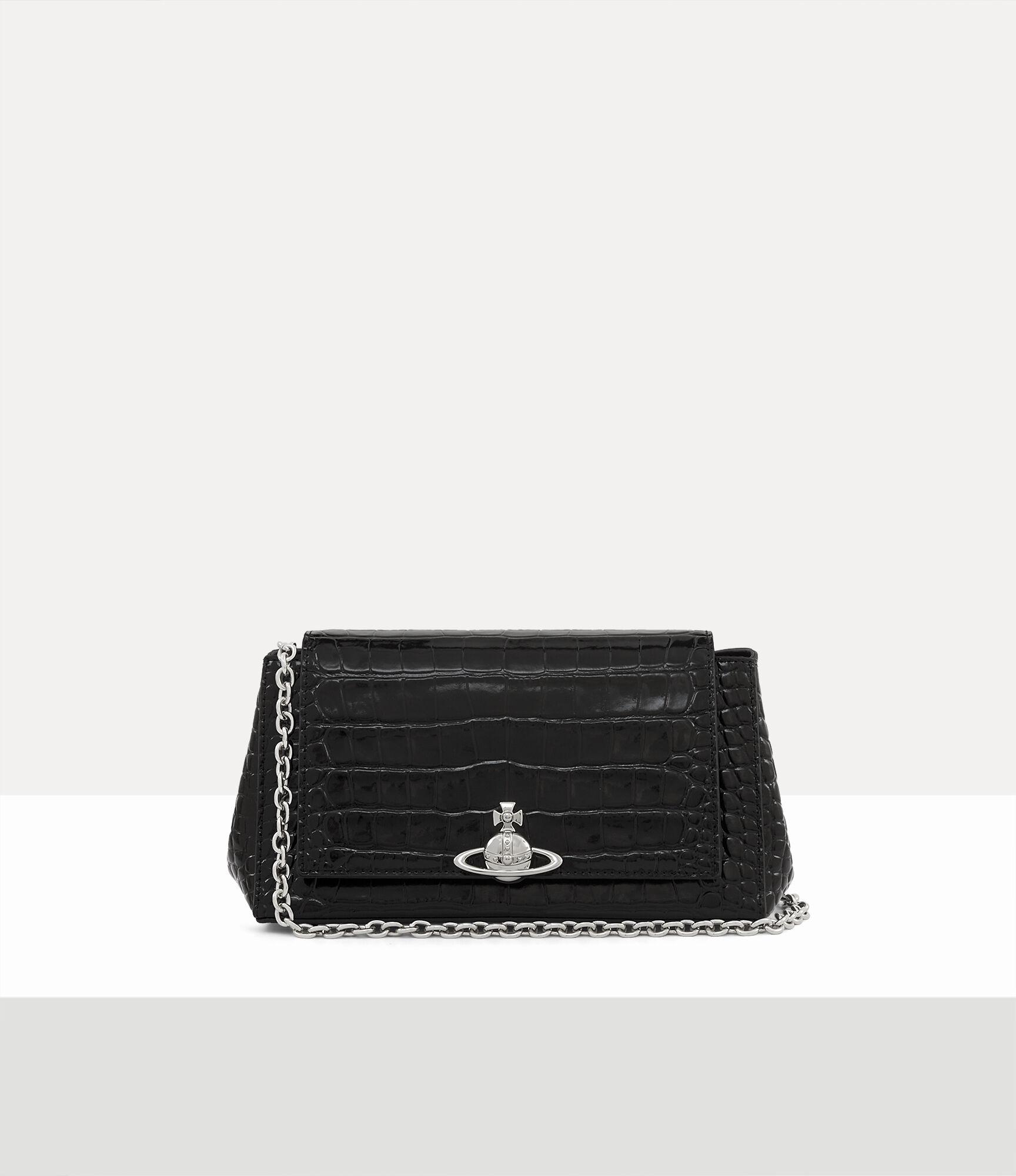 Our signature Hazel Medium handbag is reimagined this season in croc-effect embossed leather. The piece offers our polished bas relief orb motif on the magnetic clasp fastening, synonymous with Vivienne's vision of launching tradition into the future.