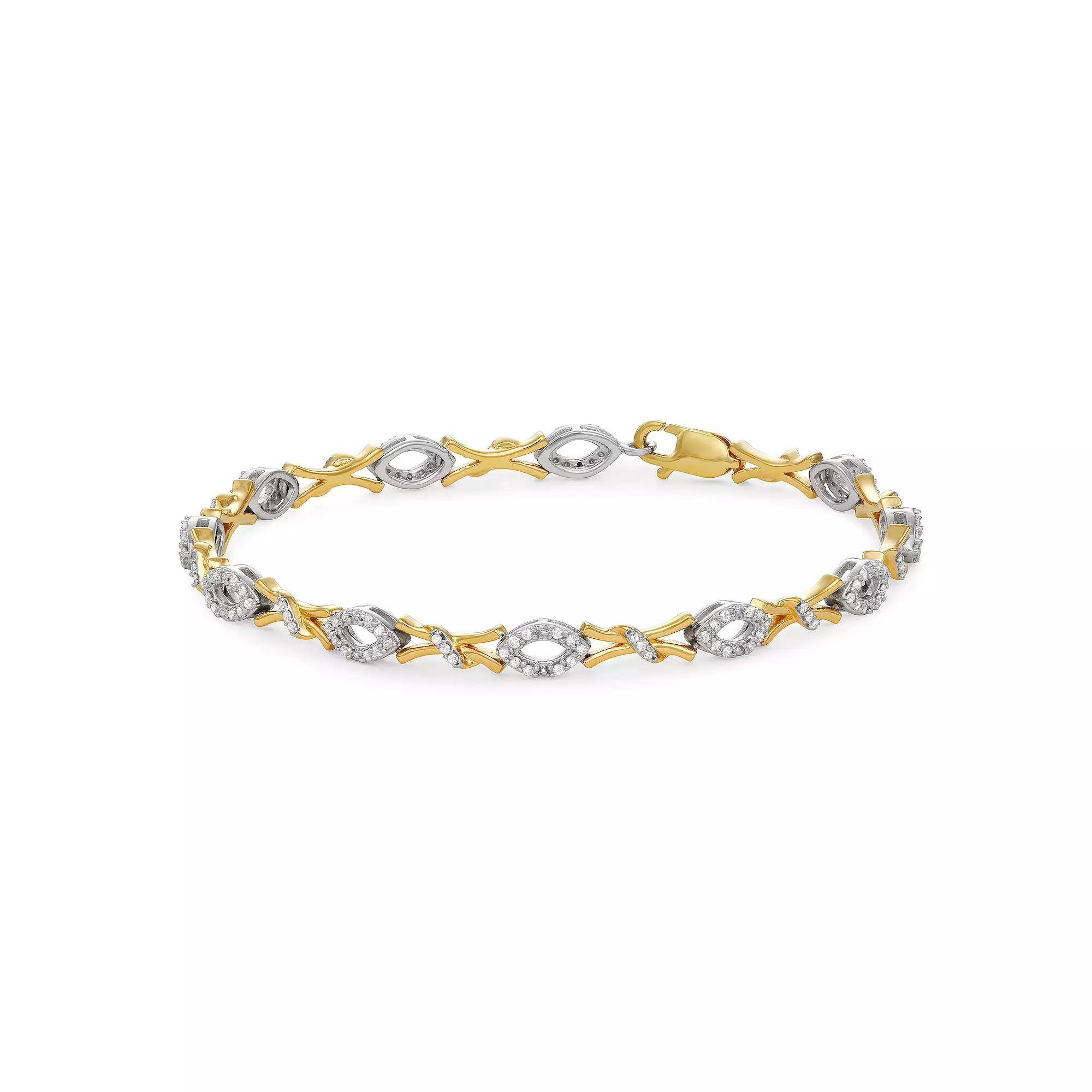 Add dazzling style to your ensemble with this HDI 1/2 Carat T.W. Diamond X O Bracelet. Click on this JEWELRY & WATCHES GUIDE to learn about fit, styles, materials and more! Add dazzling style to your ensemble with this HDI 1/2 Carat T.W. Diamond X O Bracelet. Click on this JEWELRY & WATCHES GUIDE to learn about fit, styles, materials and more! FEATURES Length: 7 in. Clasp: fold-over Metal: sterling silver Plating: gold tone Finish: polished Packaging: boxed Imported Nickel freeDIAMOND DETAILS Total weight: 1/2 ct. Color grade: H-I Clarity: I1-I2 Shape: round Setting: prong Diamond weights are approximate. Diamond Total Weights may vary between .01 and .13 ct. Some diamonds consist of fewer than 17 facets. Color: Yellow. Gender: female. Age Group: adult.