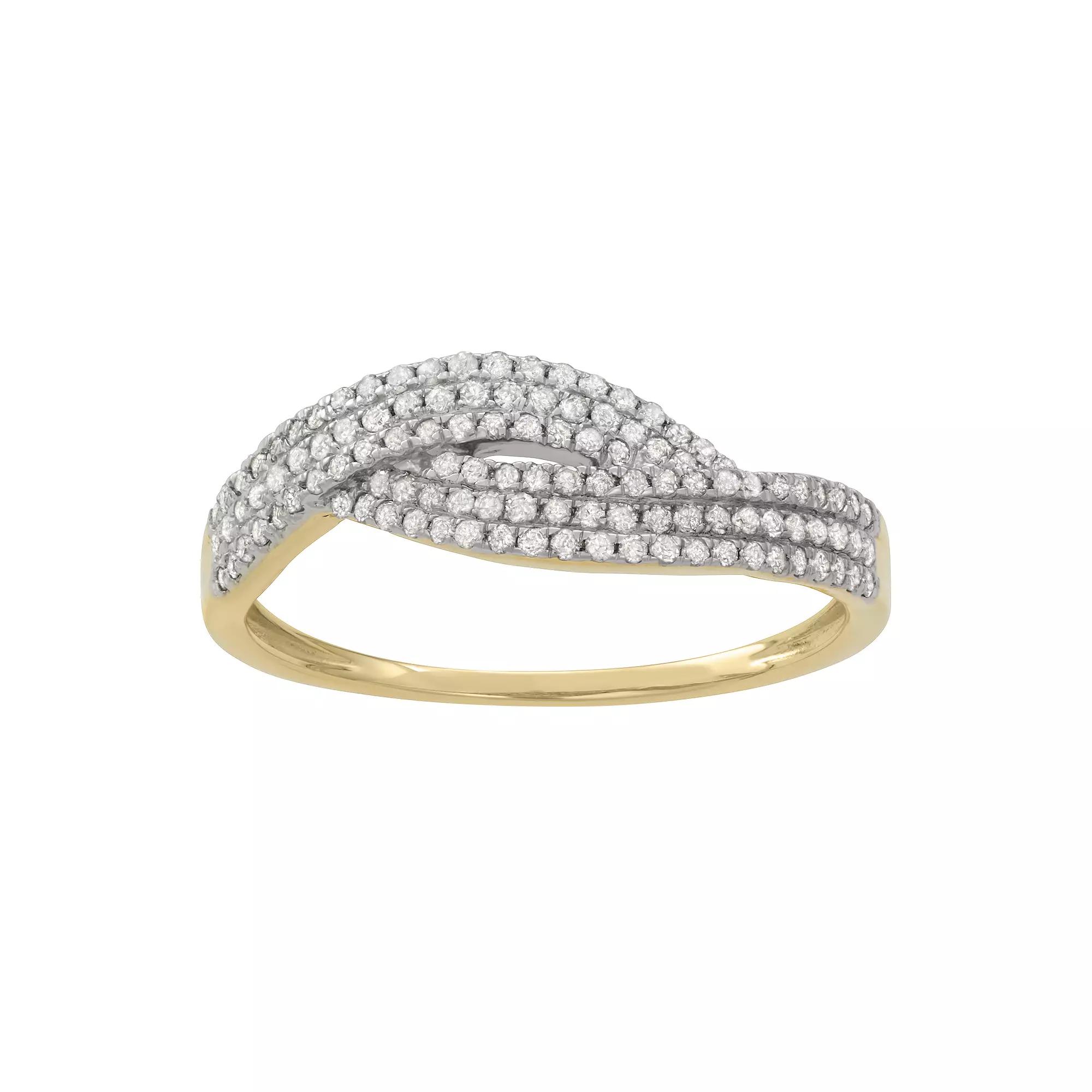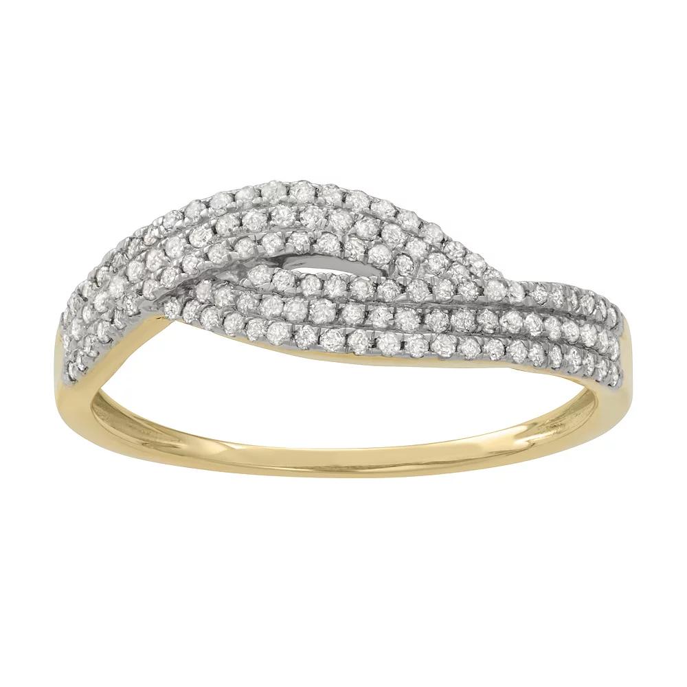 Shell be stunning in this 10k gold diamond ring. Click on this JEWELRY & WATCHES GUIDE to learn about fit, styles, materials and more! Shell be stunning in this 10k gold diamond ring. Click on this JEWELRY & WATCHES GUIDE to learn about fit, styles, materials and more! FEATURES Ring width: 6.20mm Size 5,Size 6,Size 7,Size 8,Size 9 Shank style: twist Nickel free Metal: 10k gold Finish: polished Packaging: boxedDIAMOND DETAILS Total weight: 1/3 ct. Diamond Color Grade: H,I Diamond Clarity Grade: I1,I2 Shape: round Setting: prong Color: Yellow. Gender: female. Age Group: adult.