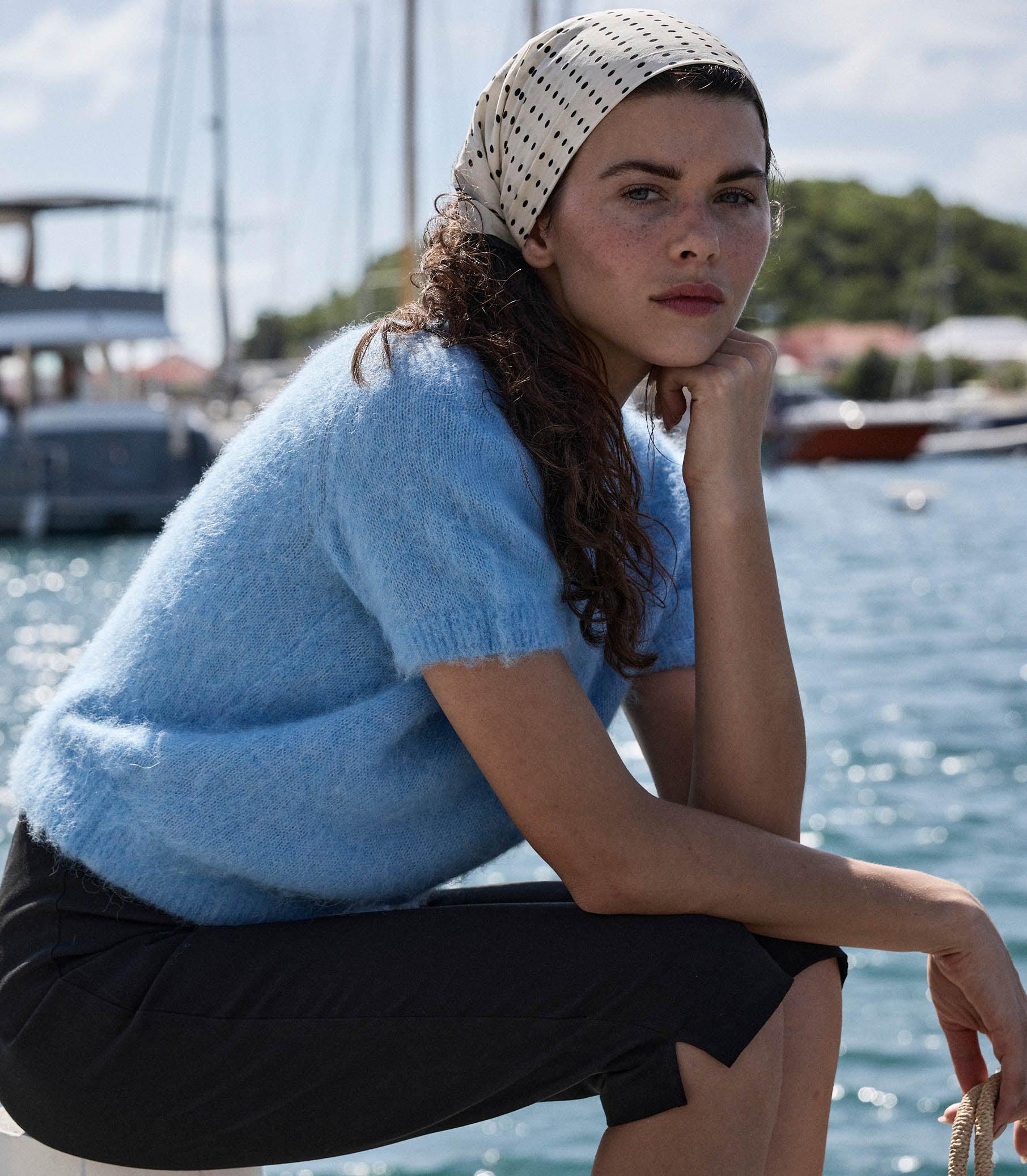 In a fluffy, brushed alpaca-wool blend, the Hearst Sweater—a new favorite of our co-founder Katherine—is a ‘60s-inspired knit with short puffed sleeves and ribbing at the neckline, cuffs, and hem.