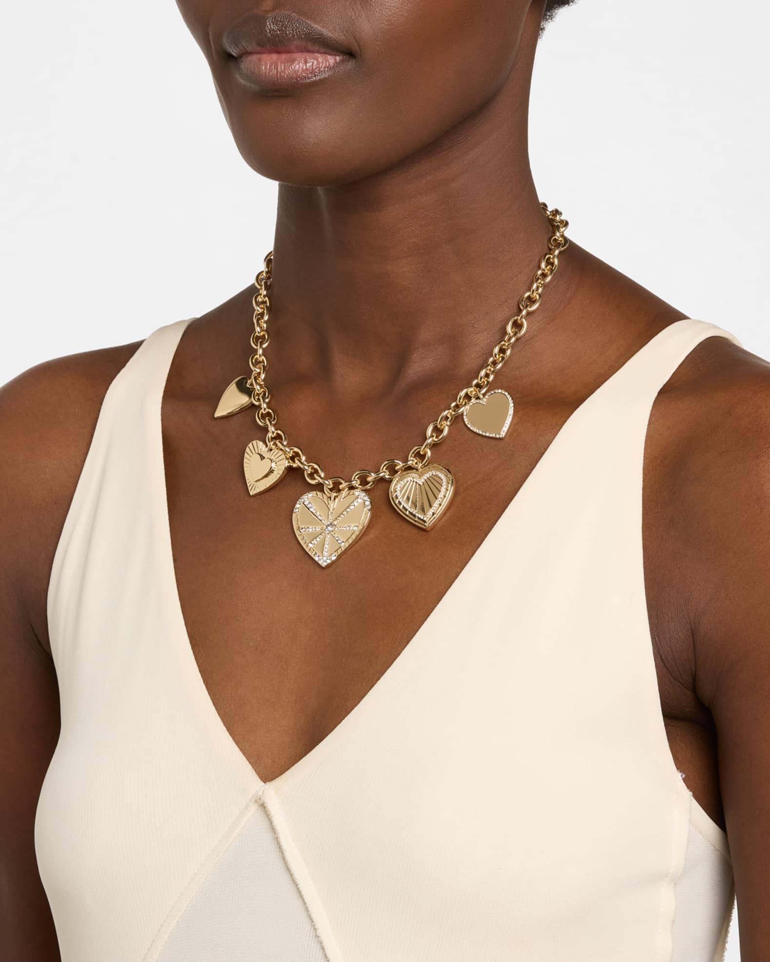 Amp up any outfit with the necklace that speaks volumes. Oversized and cool, the Heartburst Statement Charm Necklace features large heart charms that blend vintage-inspired fashions with a modern edge. Pair with simplistic earrings to create a bold look that stands out. BaubleBar pendant necklace Necklace length: approx. 18-20 inches (adjustable) Gold-tone brass Glass stones Lobster clasp Spot clean Imported